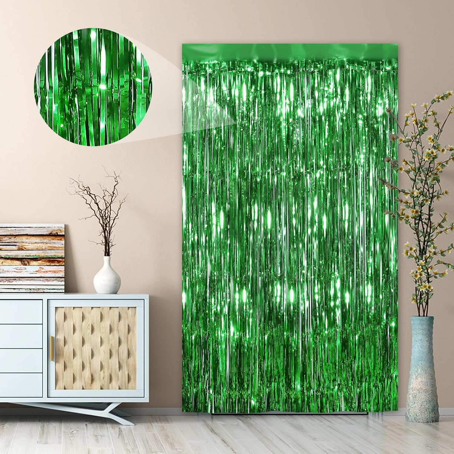 Green Fringe Curtain Party Streamers 2Pack 3.3 x 8.3 Ft Foil Fringe Backdrop Curtains for Birthday Wedding Bridal Baby Shower Holiday Tinsel Streamers Green Party Christmas Decorations Door Streamers