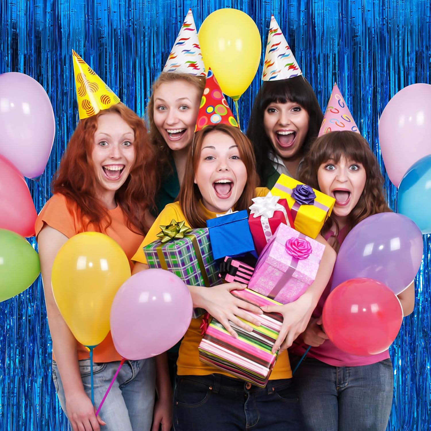 Blue Fringe Curtain Party Streamers 2Pack 3.3 x 8.3 Ft Foil Fringe Backdrop Curtains for Birthday Wedding Bridal Baby Shower Holiday Tinsel Streamers Blue Christmas Party Decorations Door Streamer