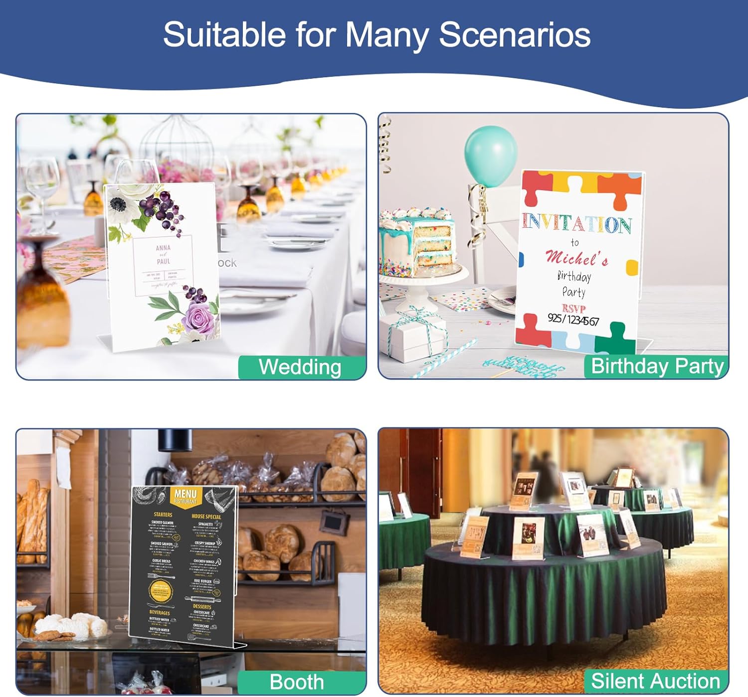 - ★【Widely Use Sign Holder】: 5 x 7 acrylic sign holder perfect for announcements, photos, images, brochures. It can be used by office, home, restaurants, trade shows, any other location where you want to display your signs.