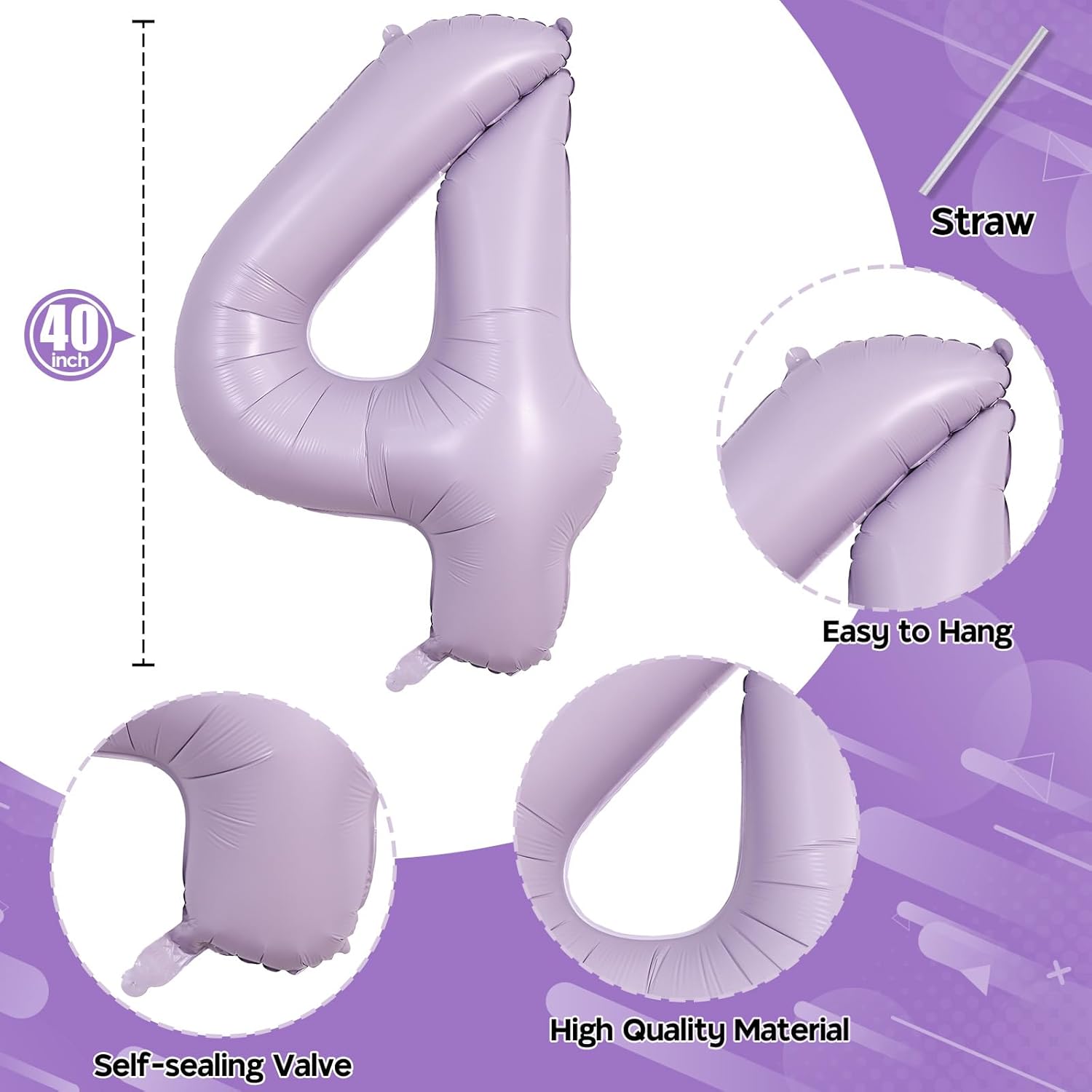 - π Pastel Purple Number 40 Balloon Set π - You will get 2pcs 40 inch light purple mylar foil number balloons (number 4 + number 0) and 1pc straw. Perfect for decorating girls women 4th or 40th birthday party.