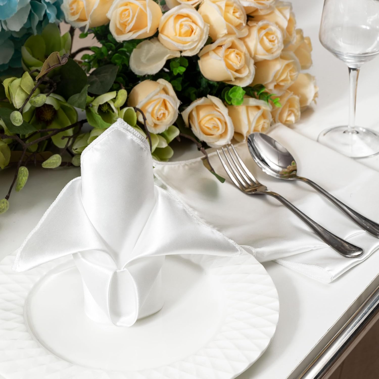 - Packge includes:36 x White satin cloth napkins, each is 16 x 16 inches/40 x 40 cm in size, silk like and solid color napkins are suitable for many occasions, enough quantity for home daily use or banquet.