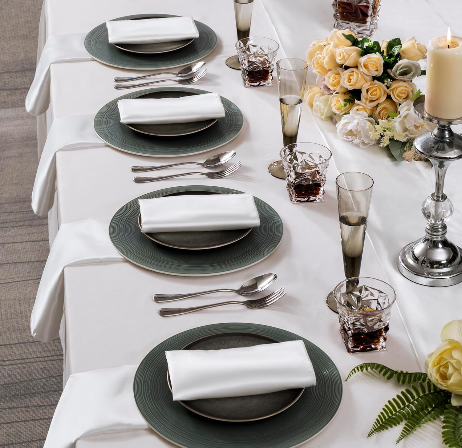 - Premium Quality Fabric: These napkins are made of delicate satin, silky soft and glossy texture, not easy to fade, not easy to shrink, can be folded into any style; and they are colorfast, wrinkle-free, which have the exquisite workmanship, and the seams on the edges are very delicate and neat. The beautiful dinner napkins will decorate your your table top and light up the party!