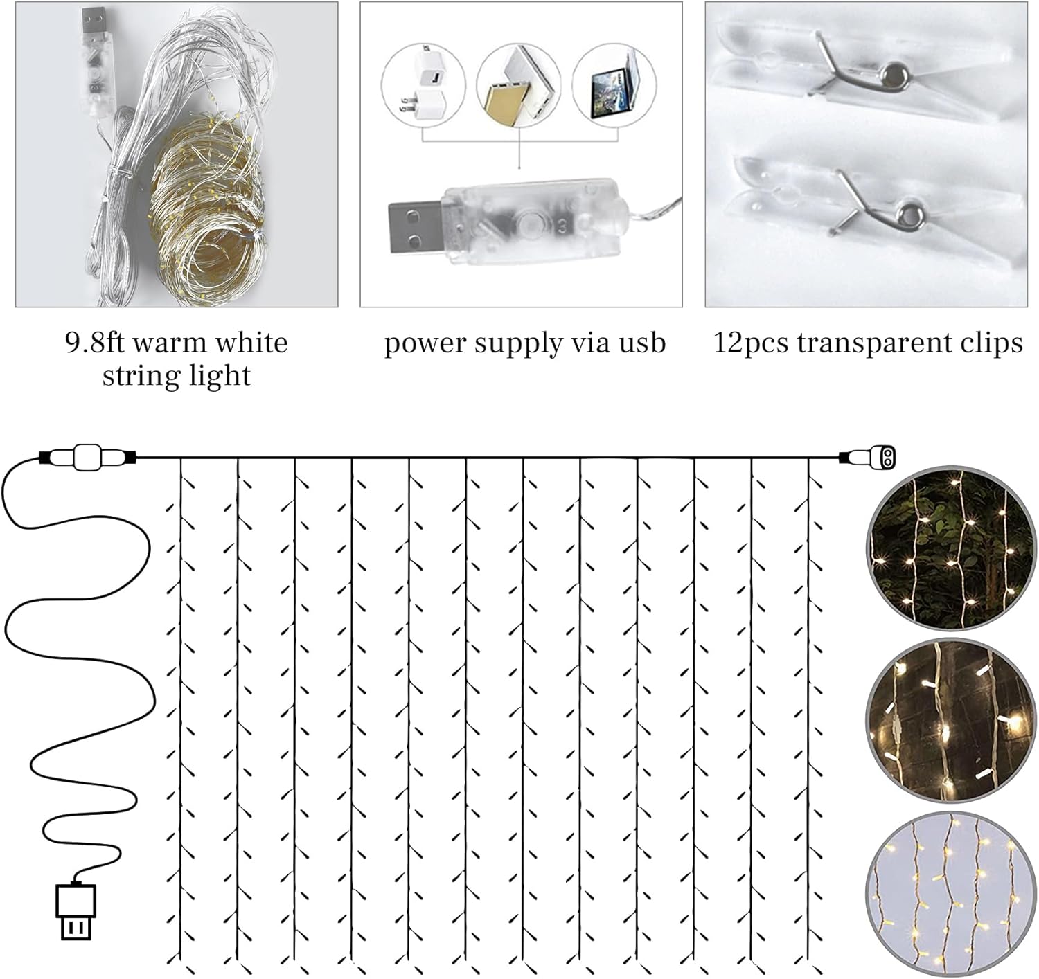 - Size: Package including 2 panels 5ft width by 10ft height dusty rose backdrop curtains with lights, a set of 9.8ft warm white lights and 12pcs Transparent clips. High quality dusty rose tulle fabric, collapsible without creases, Beautiful Sheer Drapes! Can be reused. If you want a thicker/fuller look, you would need more