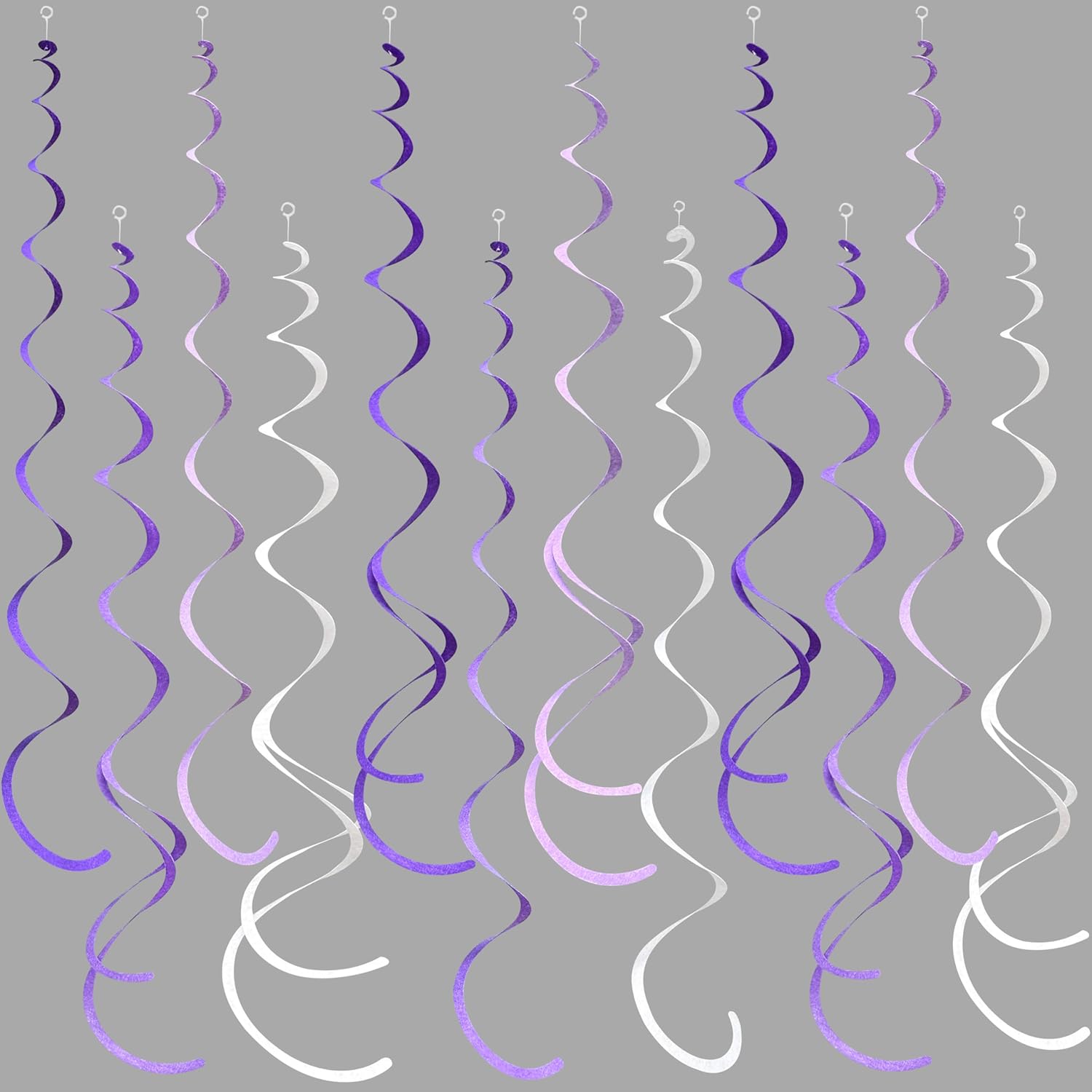 36Pcs Purple Hanging Swirl Decorations Ombre Purple Felt Swirl Streamer Spiral Ceiling Garland for Lavender Lilac Violet Birthday Wedding Bachelorette Baby Shower Graduation Holiday Hen Party Supplies