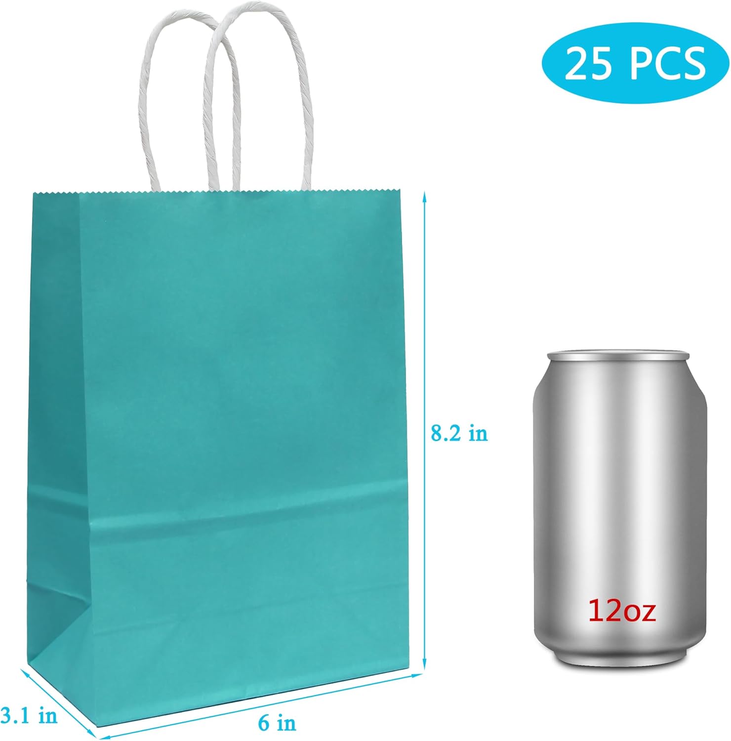 - Package: 25 PCS small teal blue gift bags with handles, each bag measuring 8.2 x 6 x 3.1 inch