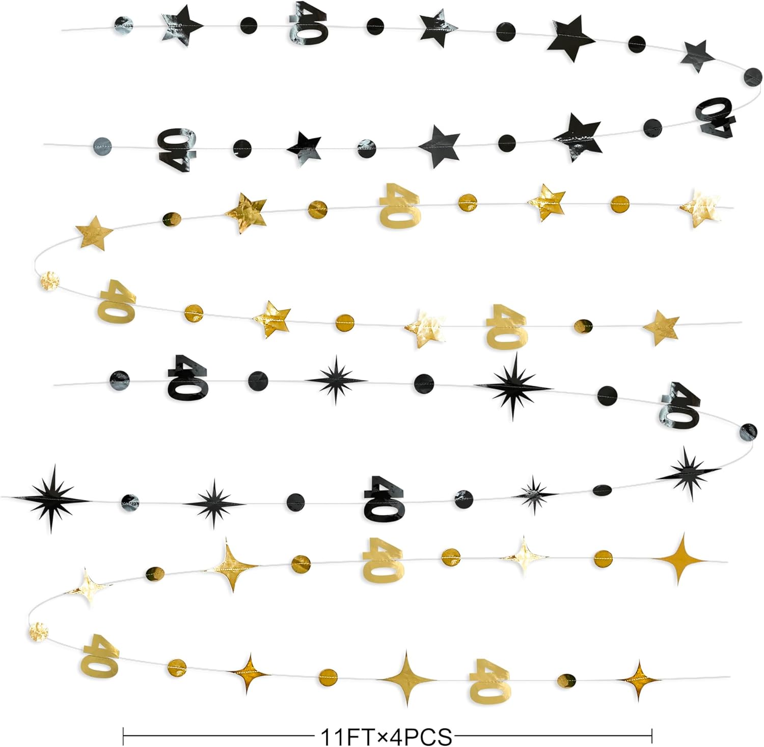 - Adorable party decor: The black gold number 40 circle dot twinkle star garland kit is perfct for mens/womens 40th birthday party, 40th birthday decorations, 40th birthday party supplies, beers and cheers to 40 years party, 40 and fabulous birthday decorations for women, im 40 bitchs party, 40th anniversary, wedding, bridal shower, birthday, engagement, barbecue, home, christenings, fetes, etc.