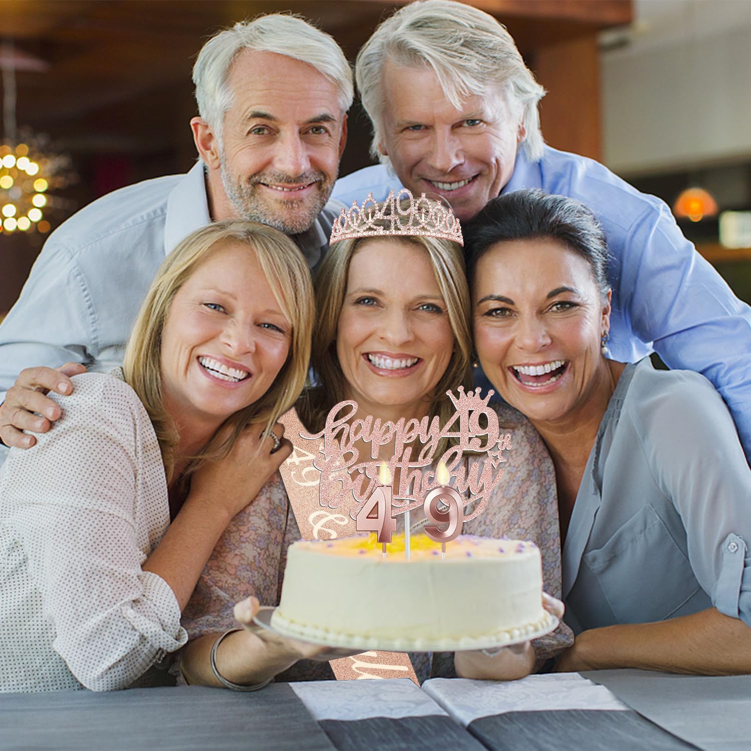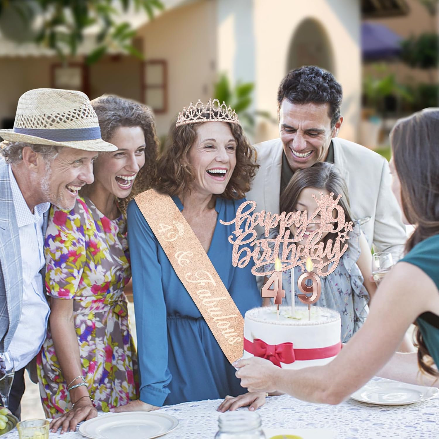 49 Birthday Decorations for Women Including Birthday Sash and Tiara, Cake Topper and Candles, 49 Year Old Gifts for Women, Rose Gold Party Favor Supplies