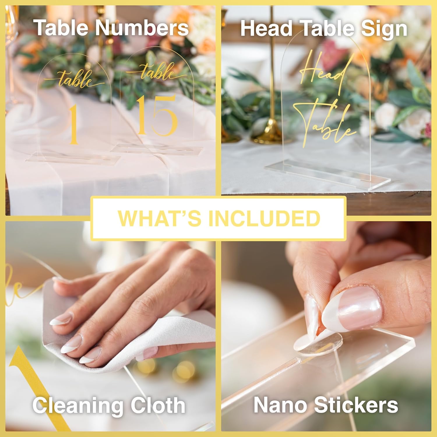 - โก๏ธ ๐พ๐๐๐๐๐๐๐พ๐๐๐ฟ ๐๐๐๐ ๐๐๐ผ๐๐๐๐ ๐ผ๐พ๐๐๐๐๐พ: Our ultra-durable acrylic wedding signs for seating chart come in four styles: 5" x 7" Clear with Gold Print, Clear with White Print, Black with White Print or Frosted with White Print, in Numbers 1-10, Numbers 1-15 or Numbers 1-20; Plus, all of our table number sets come with a Head Table Sign and a Gift table Sign