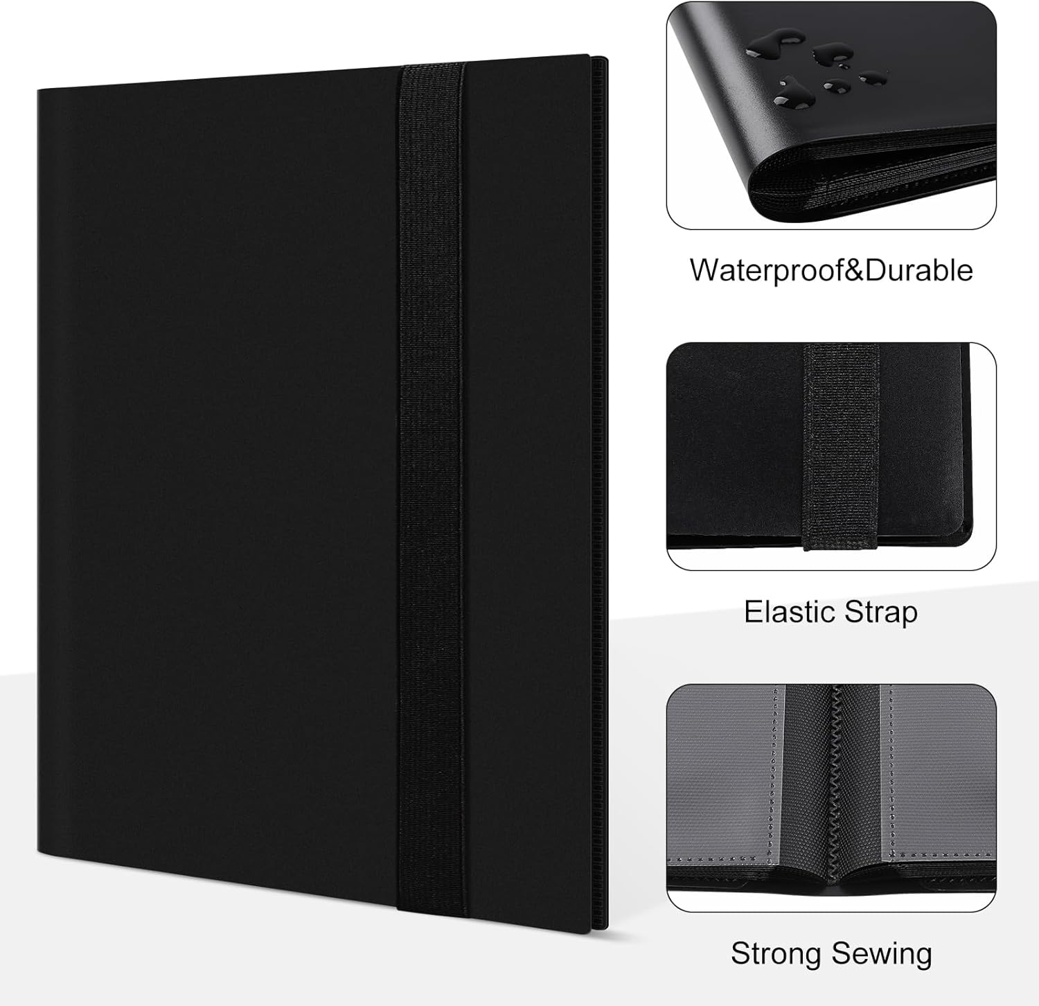 - GOOD MATERIAL: The Trading Card Binder is made of polypropylene which is acid free, the material is durable and sturdy, which is hard enough to prevent the card from bending or creasing. The elastic strap of the Card Binder Album is pretty tight, which keeps your card on the card binder.