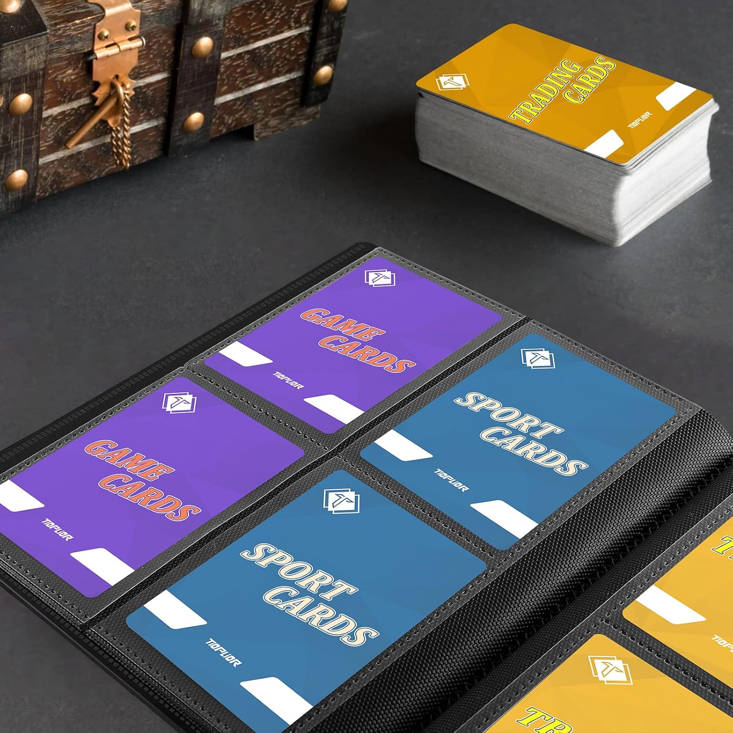 - 4 POCKET CARD BINDER: The card binder for trading card includes 20 Pages of 4-Pocket side-loading sheets to get your collection started. Able to hold 160 trading cards safely. The card binder closed with elastic strap.