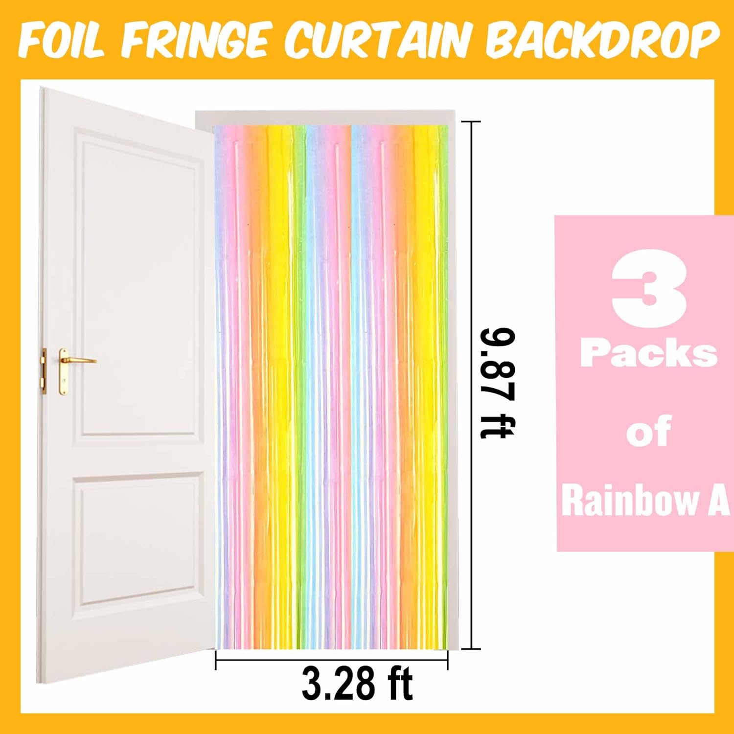 3 Pack Rainbow A Foil Fringe Curtains Backdrop, 3.28 x 9.8 Ft Metallic Streamers Tinsel Curtains Background for Photo Booth, Birthday, Halloween, Christmas, Thanksgiving, New Year Party Decorations