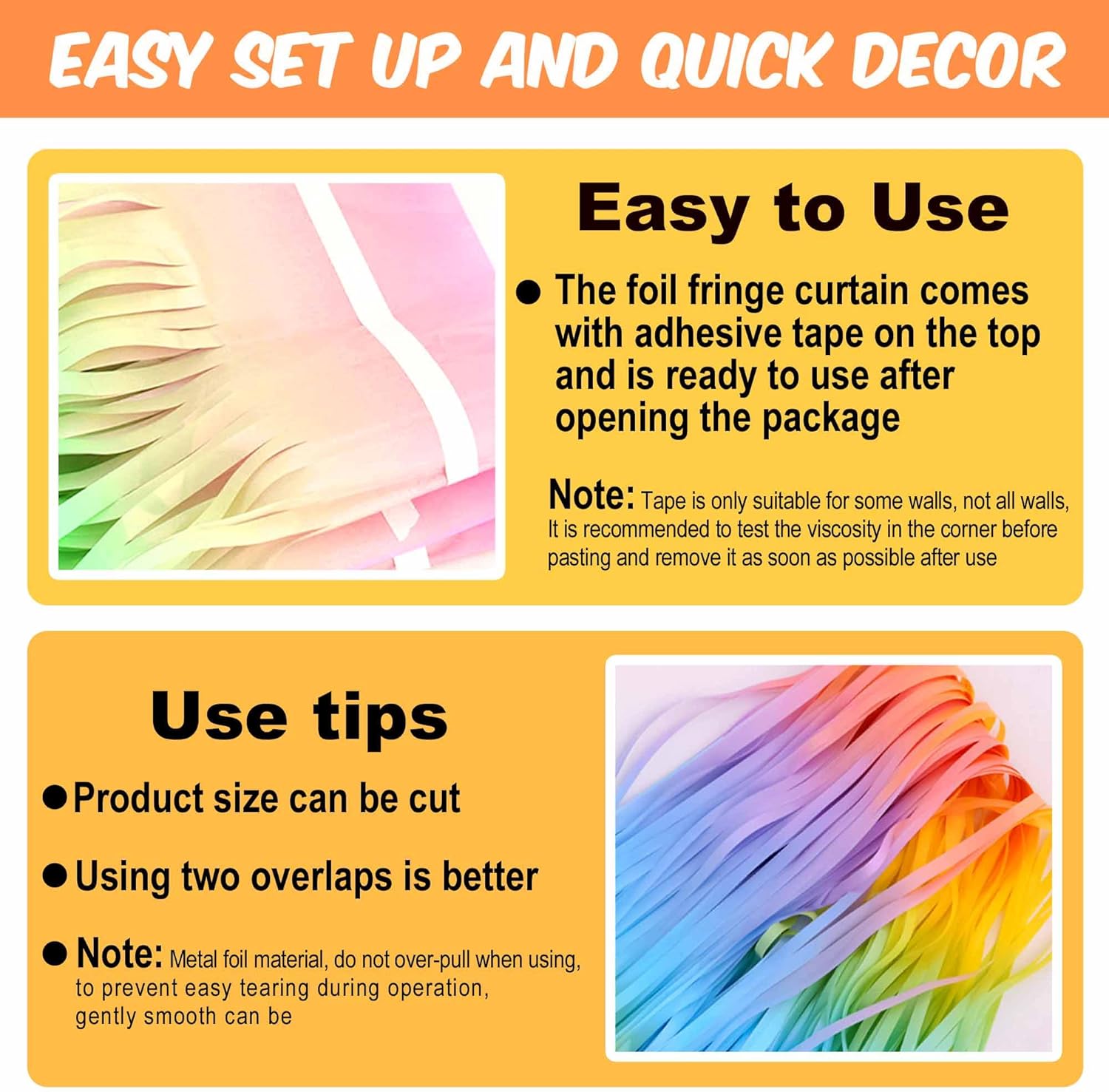 - Easy to Use: The tinsel foil fringe streamers curtain backdrop comes with double sided tape on the top, gently peel plastic strip off and it would be very easy to paste on smooth surfaces such as wall, window, table, door or anywhere you like
