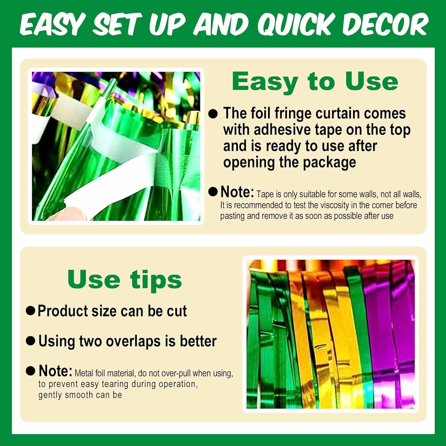 - Easy to Use: The tinsel foil fringe streamers curtain backdrop comes with double sided tape on the top, gently peel plastic strip off and it would be very easy to paste on smooth surfaces such as wall, window, table, door or anywhere you like