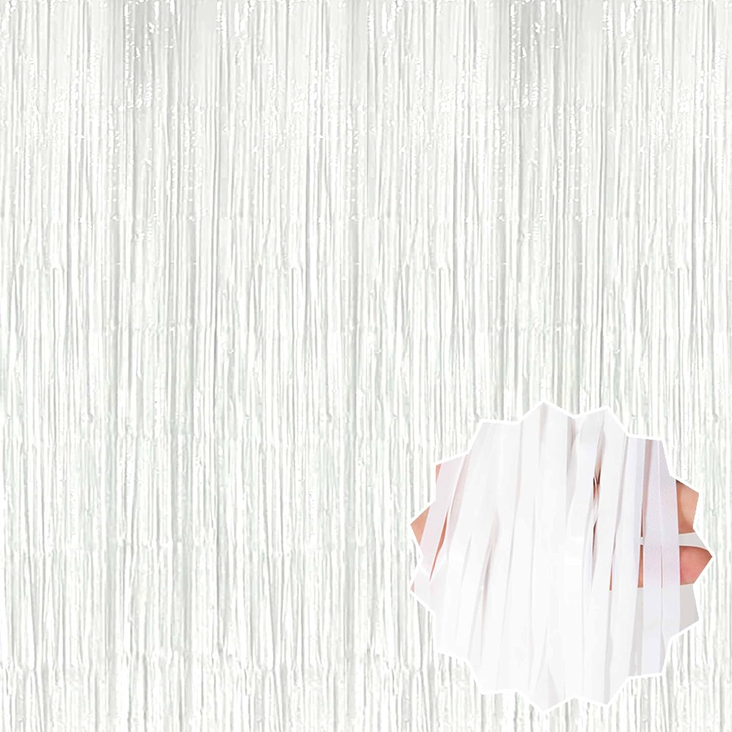 - Package and size: 3 Packs Foil Fringe Streamers Curtain Backdrop. The size is 3.28 x 9.8 feet. It's long, enough to fit any party occasion. Made of metallic foil material, shiny and creating dazzling effects, adding luxury and visual impact to the party