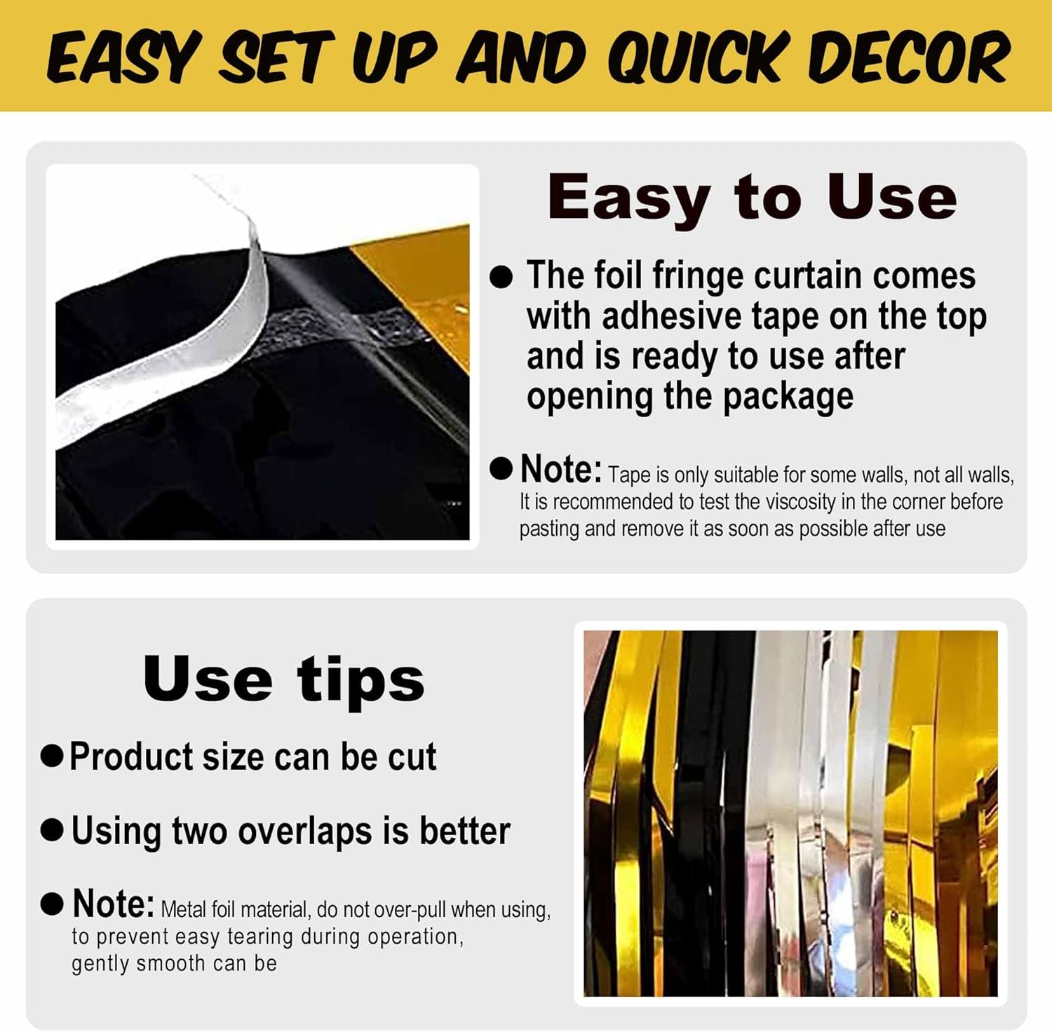 - Easy to Use: The tinsel foil fringe streamers curtain backdrop comes with double sided tape on the top, gently peel plastic strip off and it would be very easy to paste on smooth surfaces such as wall, window, table, door or anywhere you like