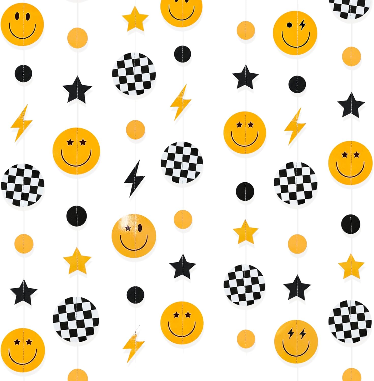- ⚡PACKAGE CONTAINS- 4 set of happy dude lightning star circle dot party garland banner,each string is 11 feet, Total is 44 feet.