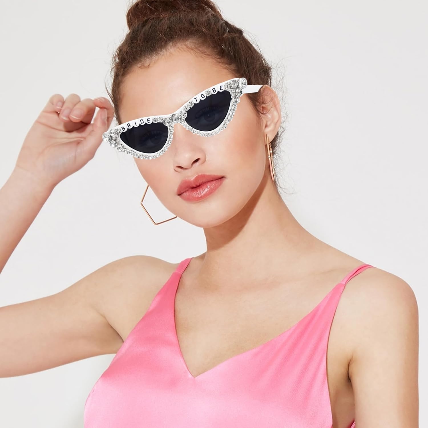 - 👰👰【BRIDE TO BE DESIGN With Rhinestone】- These cat eye sunglasses bachelorette party are adorned with dazzling and "BRIDE TO BE" lettering, symbolizing timeless love and happiness. Once you put them on, you'll instantly become the center of attention at bachelorette and bride to be parties. Radiate elegance with these bride sunglasses!