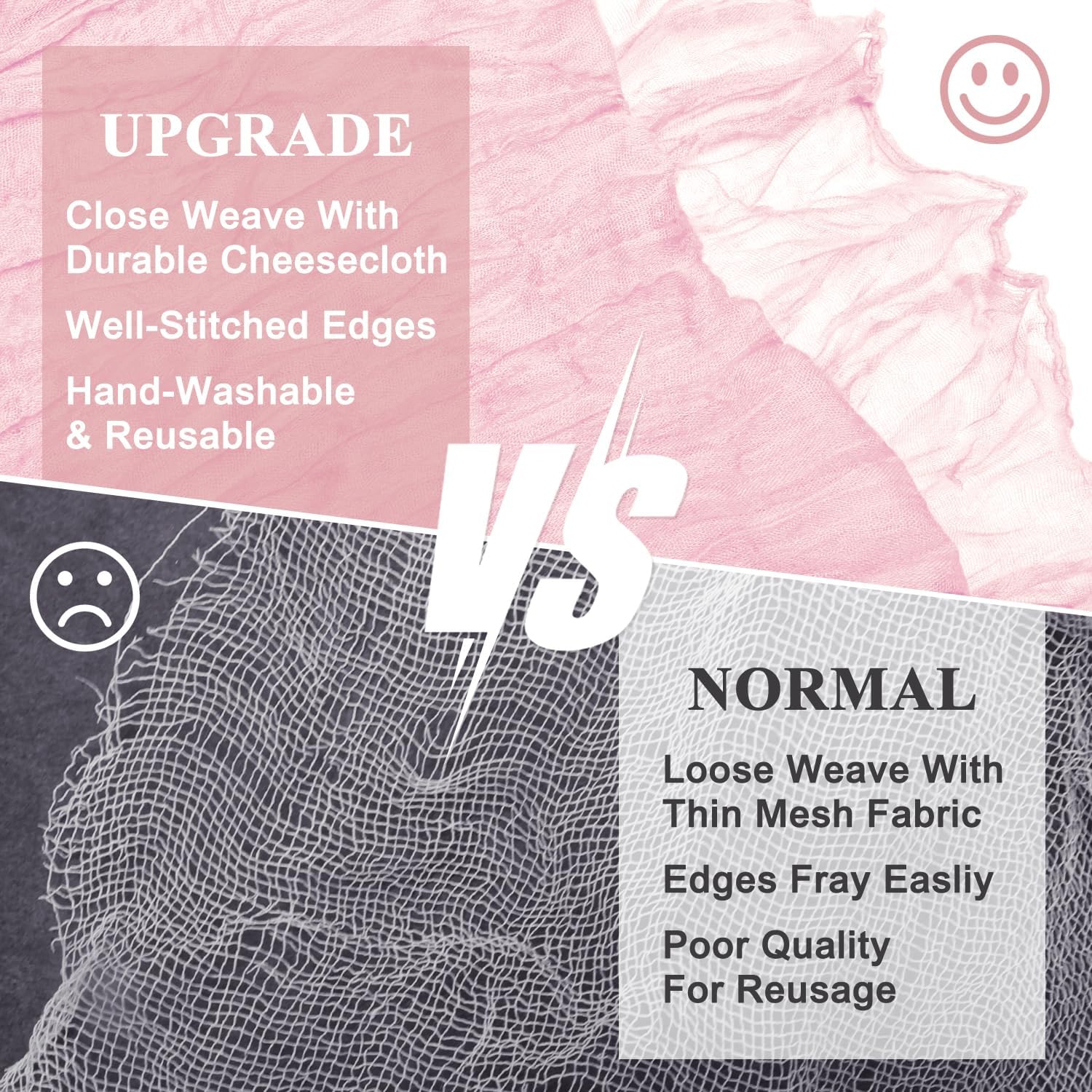 - 【Cheesecloth Table Runner】 Size: 35" W x 120" L. You will get 2 pieces 10FT length cheesecloth table runner. The sheer rustic table runner is long enough to span a large table and drape gracefully across the table. It will gently sway in the wind, adding a romantic atmosphere to your occasion. These eye-catching gauze table runners are ideal for arranging an elegant, stylish tablescape.