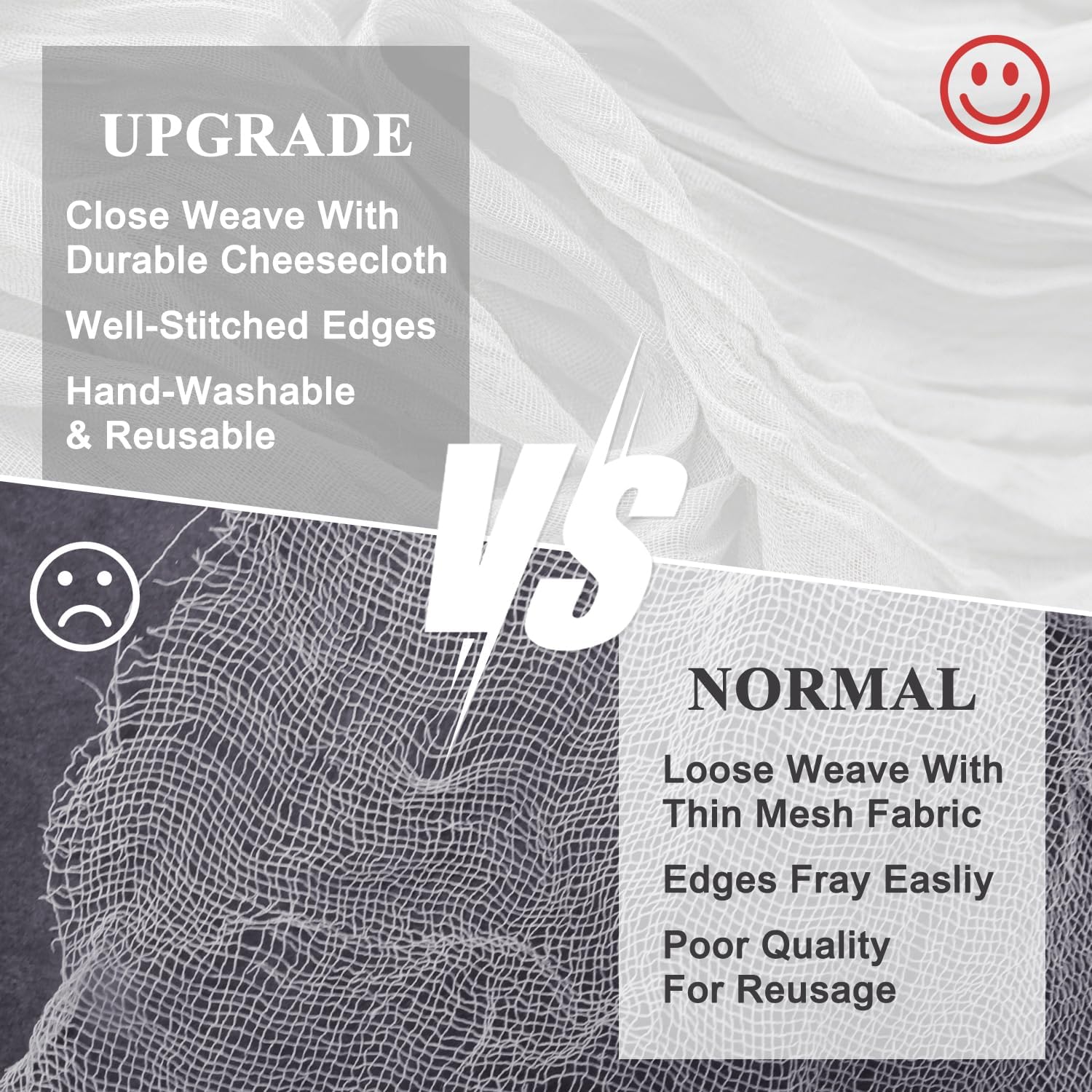 - 【Cheesecloth Table Runner】 Size: 35" W x 120" L. You will get 2 pieces 10FT length cheesecloth table runner. The sheer rustic table runner is long enough to span a large table and drape gracefully across the table. It will gently sway in the wind, adding a romantic atmosphere to your occasion. These eye-catching gauze table runners are ideal for arranging an elegant, stylish tablescape.