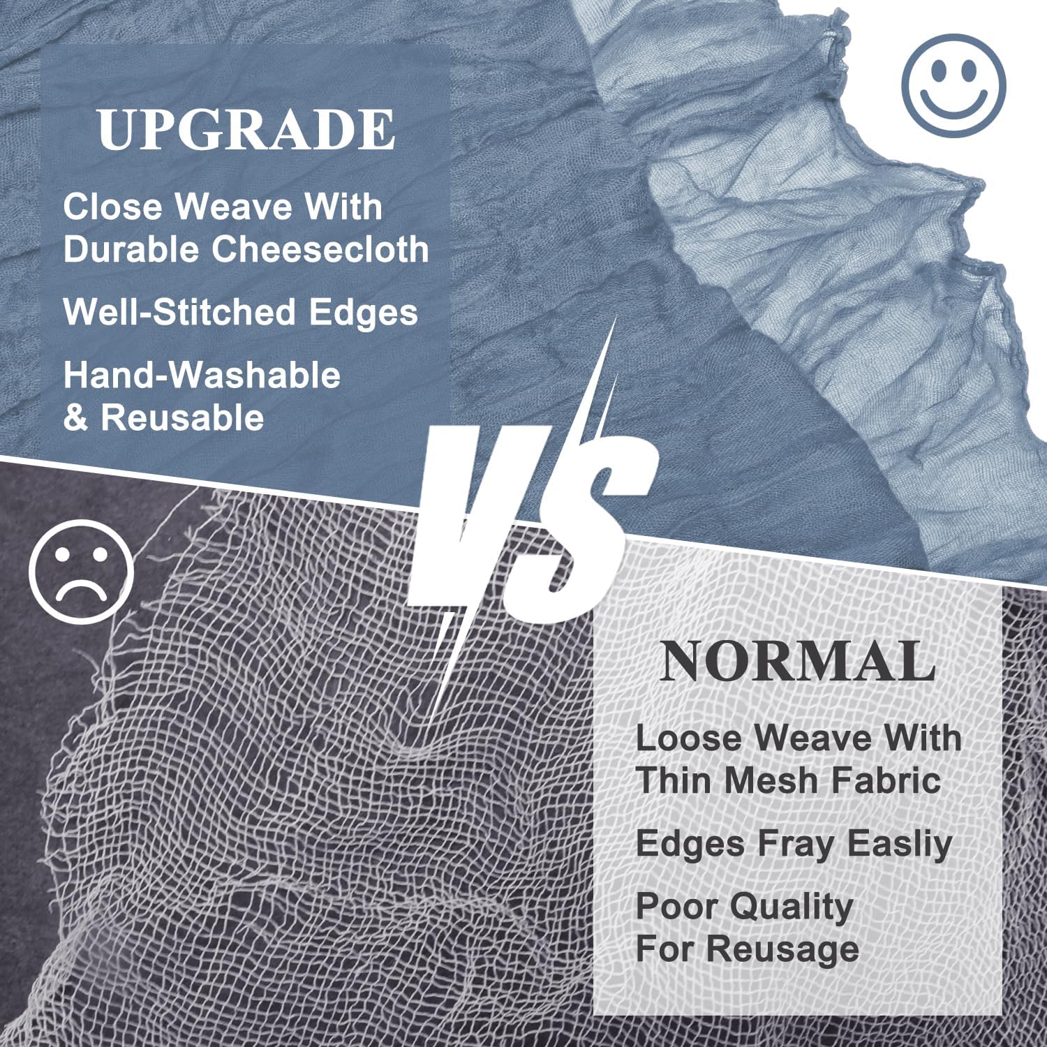 - 【Cheesecloth Table Runner】 Size: 35" W x 120" L. You will get 3 pieces 10FT length cheesecloth table runner. The sheer rustic table runner is long enough to span a large table and drape gracefully across the table. It will gently sway in the wind, adding a romantic atmosphere to your occasion. These eye-catching gauze table runners are ideal for arranging an elegant, stylish tablescape.