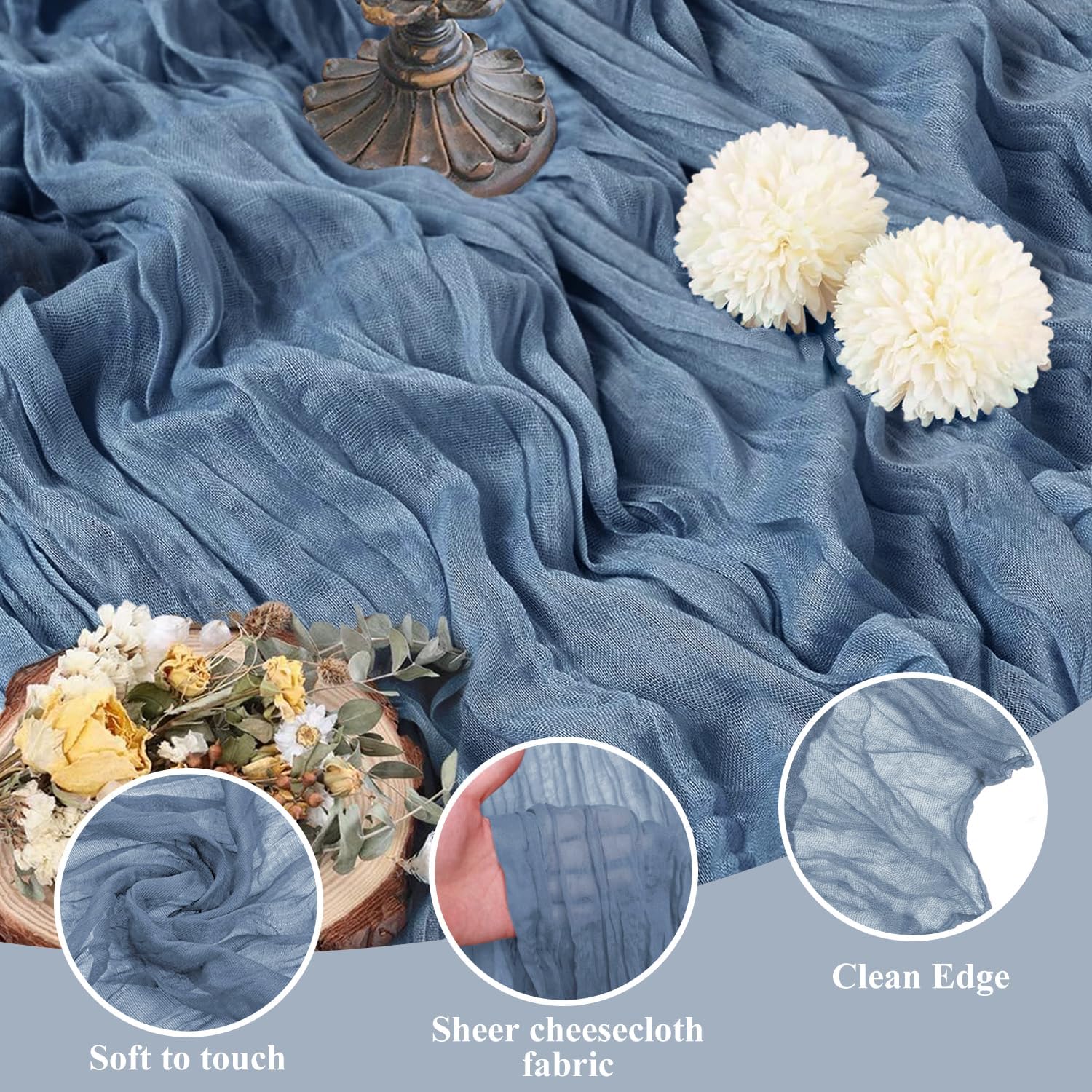Asee'm 3pcs Cheesecloth Table Runner 120 Inches Dusty Blue Boho Gauze Cheese Cloth Runner 10FT Rustic Sheer Table Runners for Centerpiece Wedding Baby Shower Spring Easter Decoration