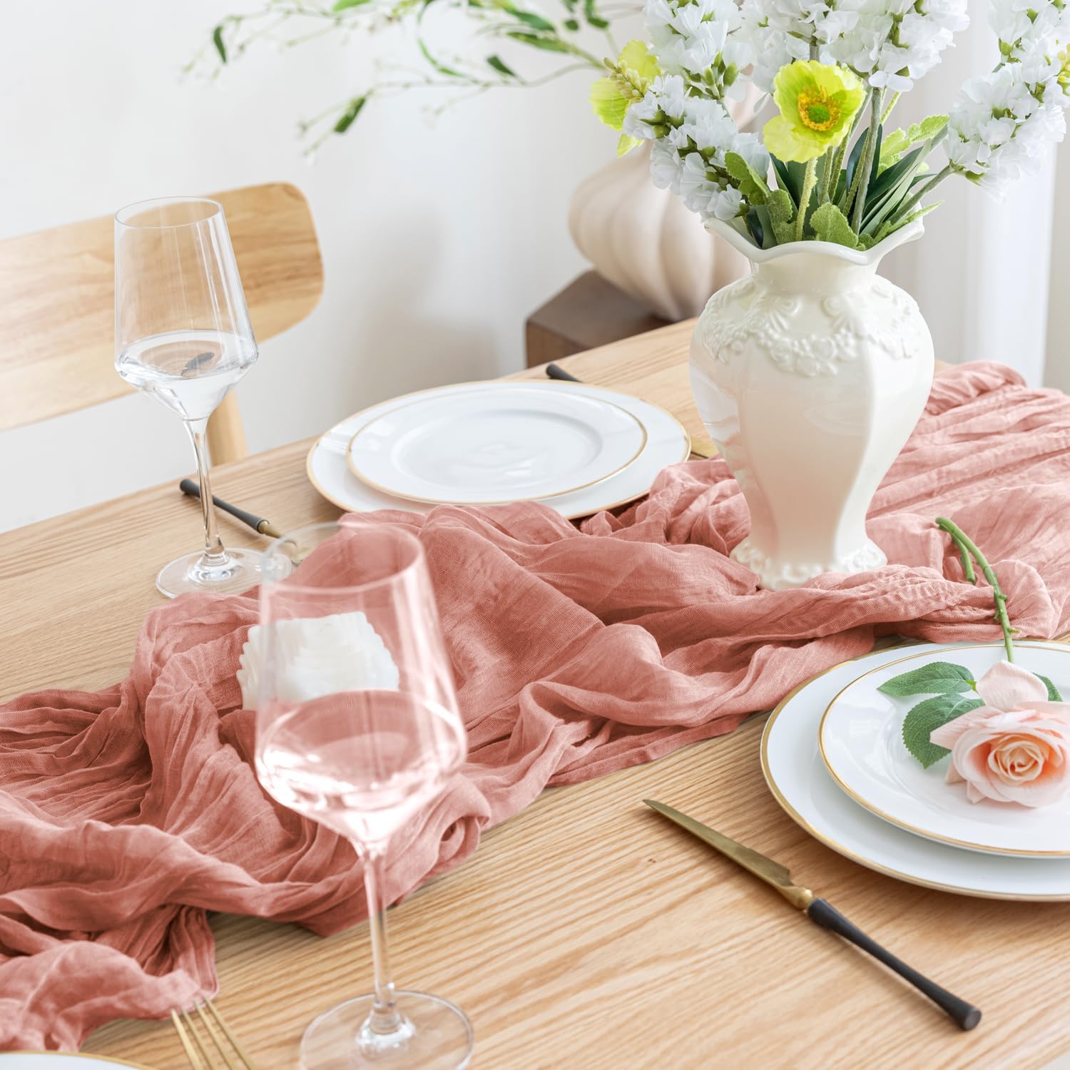 Asee'm 3pcs Cheesecloth Table Runner 120 Inches Dark Rose Boho Gauze Cheese Cloth Runner 10FT Rustic Sheer Table Runners for Summer Wedding Baby Shower Holiday Party Decoration