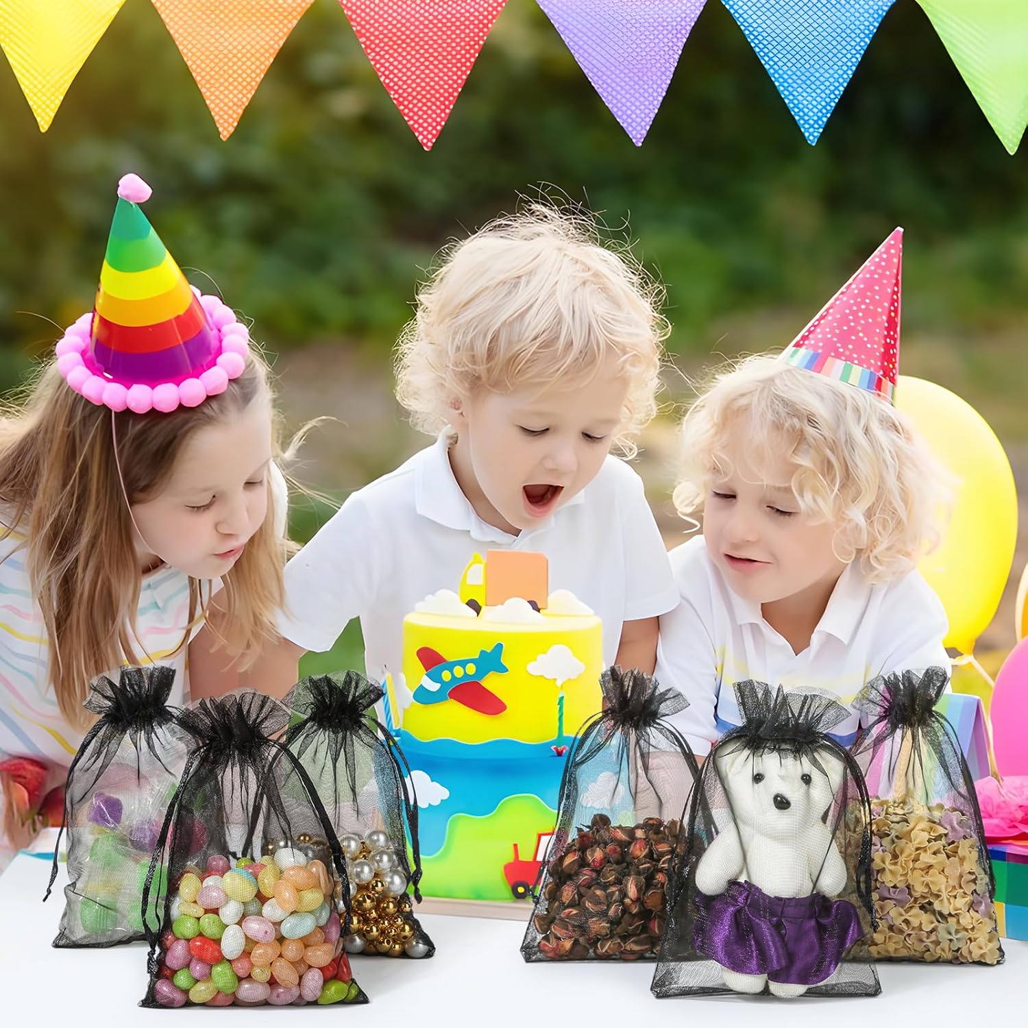 50PCS Sheer Organza Bags, Wedding Favor Bags with Drawstring, 4x6 inches Jewelry Gift Bags for Party, Jewelry, Festival, Makeup (Black)