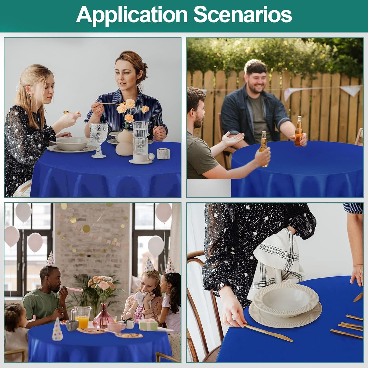 - 【Packing and Dimensions】Please measure the size of the table carefully before purchasing. You will get four pack blue tablecloth in one order. This table cloth is 120 inch in diameter