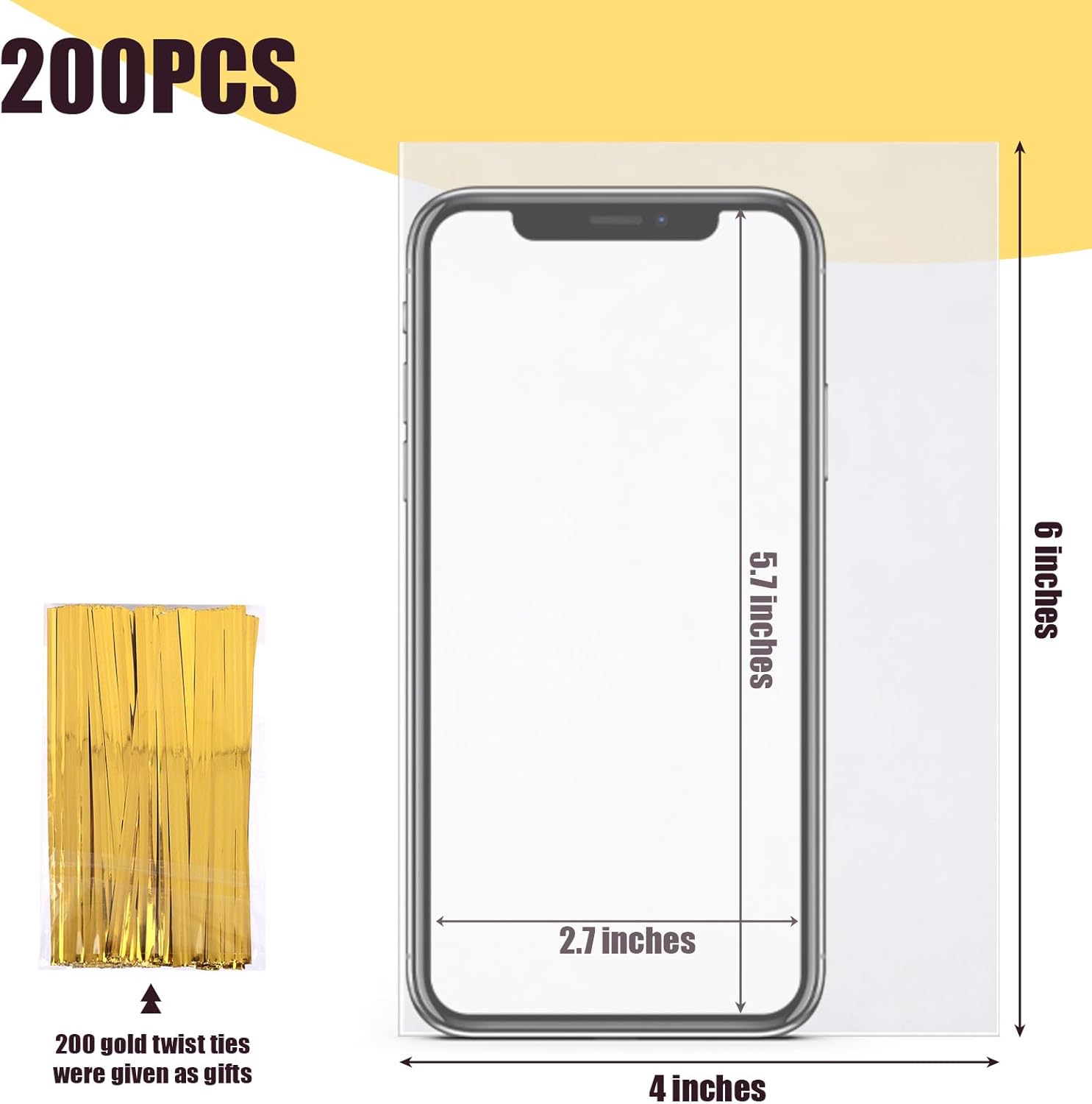 - Great Value Pack: Our cellophane bags set includes 200PCS 4 x6 inches cellophane bags and 200PCS gold twist ties. Selected size for gifts, party favors, bakery and etc. Cost-effective pack for your variety of gift wrapping occasions.