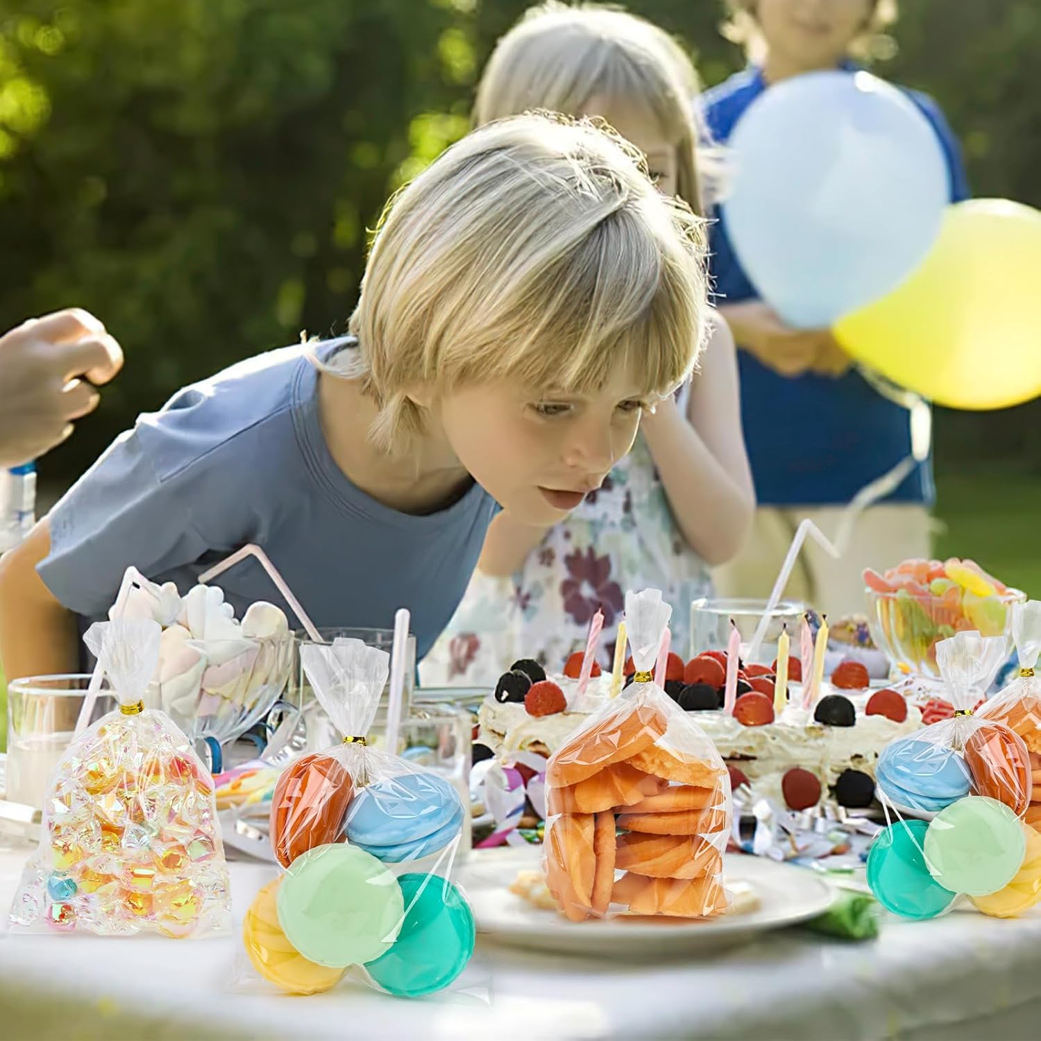 - Wide Application: These clear cellophane bags are of food quality and safe for packing food. Great goodie bags for party favors, popcorn, candies, pretzels, cookies, cake pops, chocolates, small gifts and snacks, etc. Your gift wrapping companion for almost every gift giving occasions like wedding, party, birthday, baby shower, festive party, Easer, Valentines Day, Mother's Day, Father's Day, Halloween, Christmas, etc.