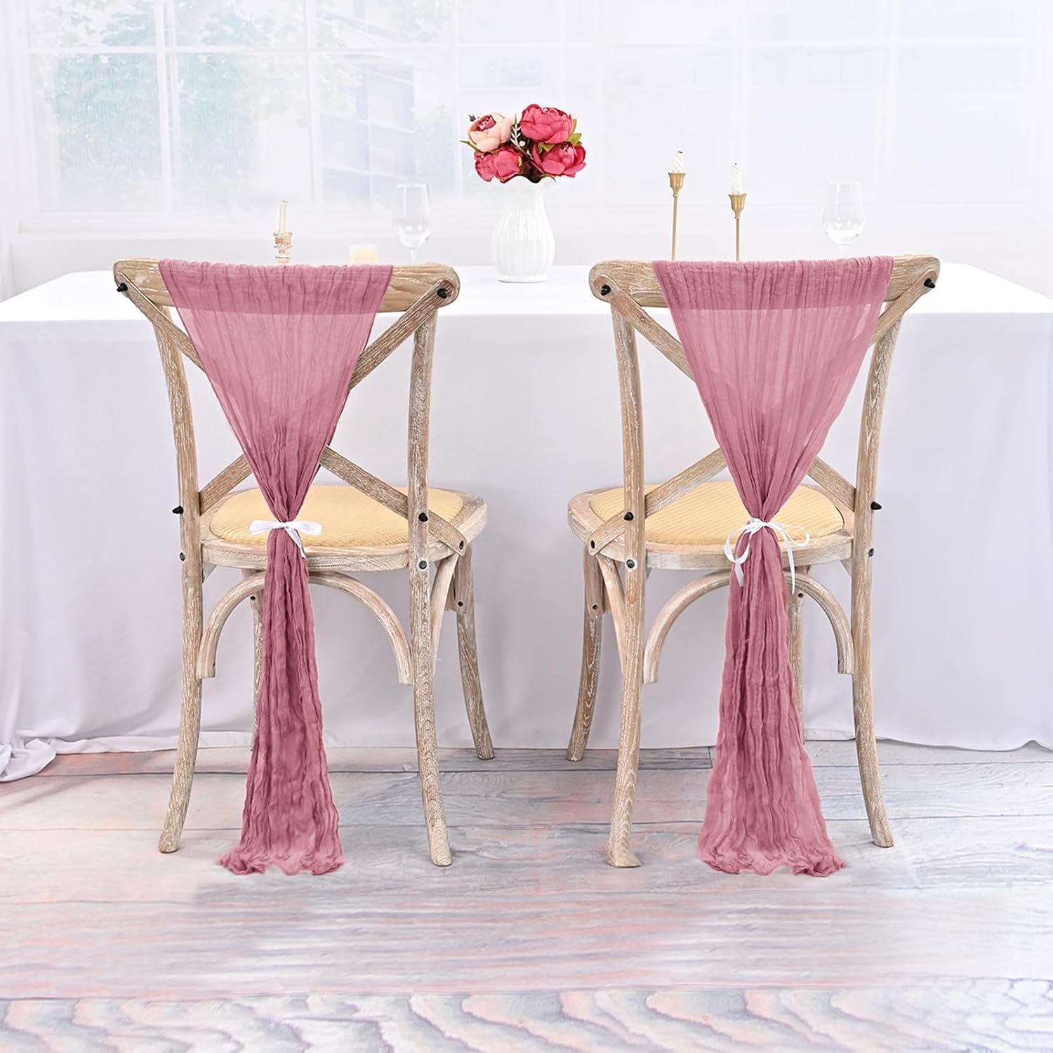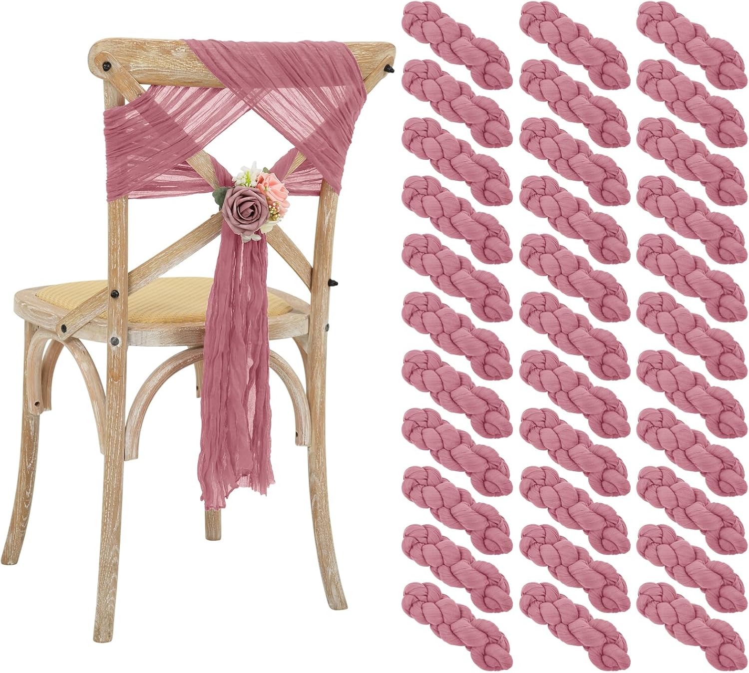 50 PCS Cheesecloth Chair Sashes Bows Wedding Aisle Decorations Chair Ribbon Ties Back Sash for Wedding Party Events Banquet Chair Cover Decoration (Dusty Rose)