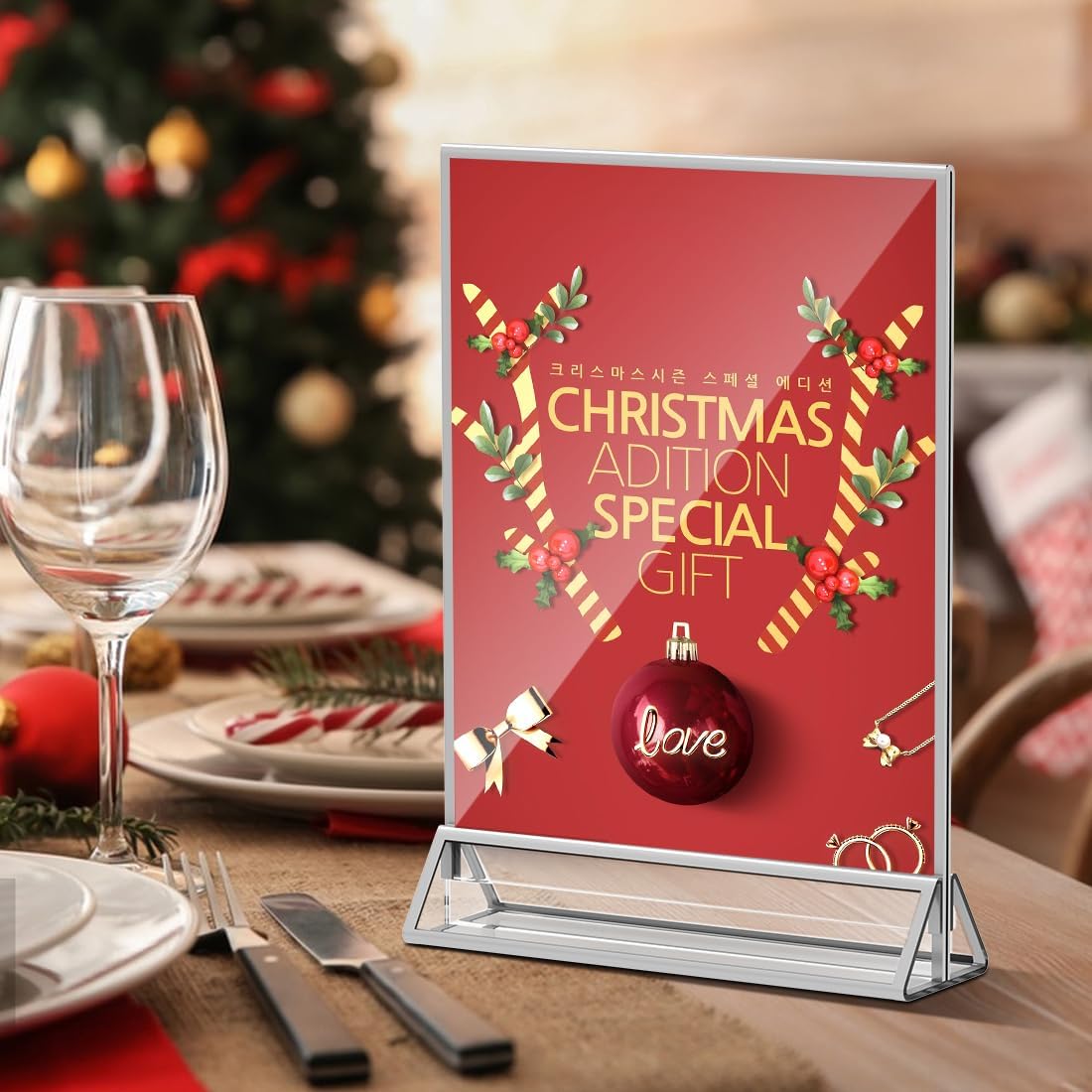 Clear Acrylic Sign Holder 8.5X11 with Silver Borders Display Stand, Double Sided Acrylic Picture Frames Plastic Sign Holder for Wedding Table Numbers Menu Holder (6 Pack)