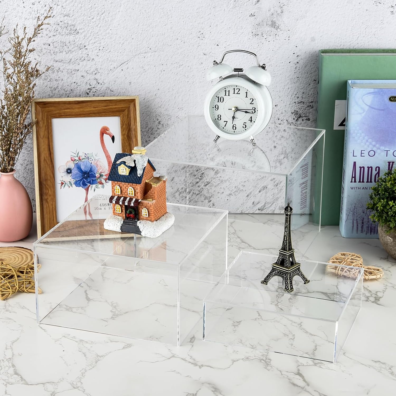 3Pcs Clear Buffet Risers Acrylic Boxes Display Food Risers for Buffet Table Platter Parties Weddings Catering Dessert Collectibles Figures Show ( 6''x7''x8'')