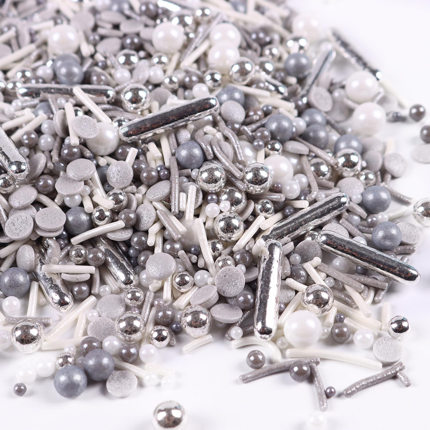 - Silver Sprinkles for Cake Decorating: A bottle of sliver sprinkles mix(120g/4.23oz), whether it's cakes, cupcakes, cookies, ice cream, cake pops, brownies, or any dessert you can dream of; our silver metallic sprinkles are your go-to for that extra dash of cheer.