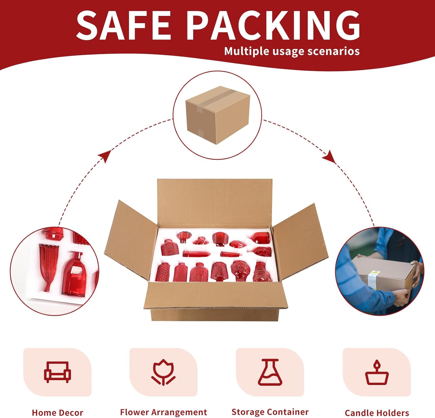 - Secure Packaging Assurance: Each set of these Wine Red vases is meticulously wrapped in deep foam and packed in strong cartons, guaranteeing safe and intact delivery. Shop with confidence, knowing your purchase will arrive in pristine condition.