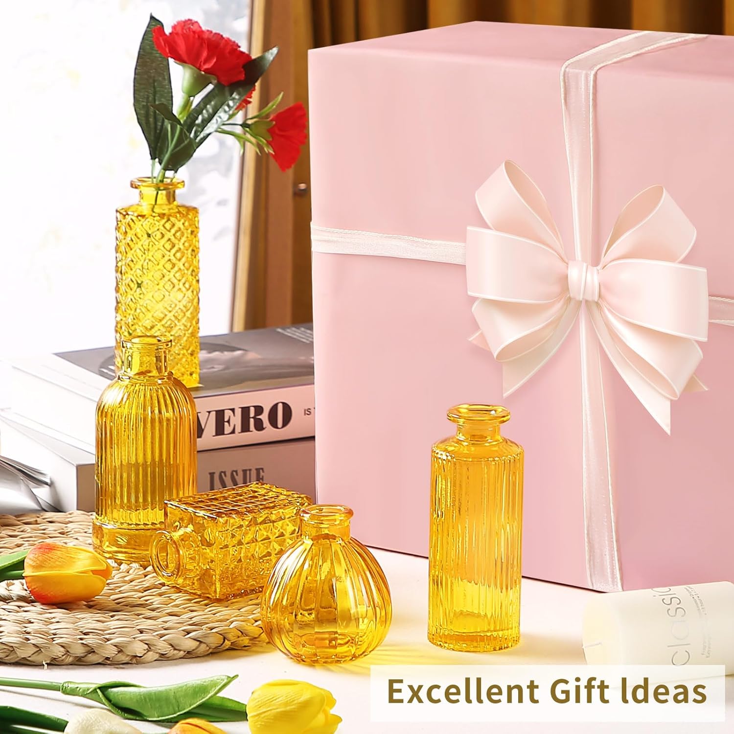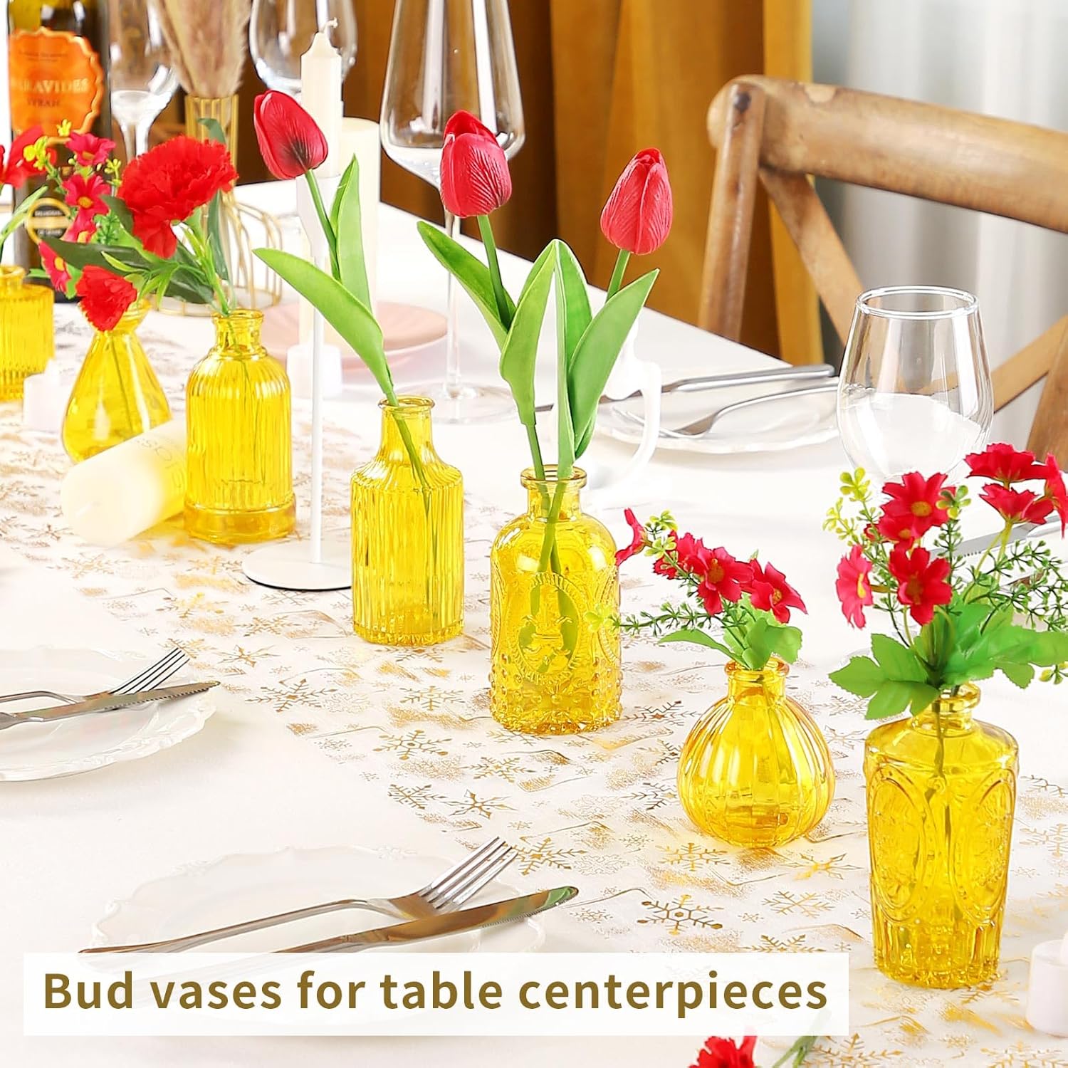 - Elegance Redefined: These mini glass vases in yellow serve as perfect vessels for real or artificial flowers. Each small yellow vase accommodates a single short stem or two petite flowers, presenting a sophisticated and graceful appearance even when displayed individually. Their delicate shapes and intricate patterns make for captivating dรฉcor accents, even without floral arrangements.