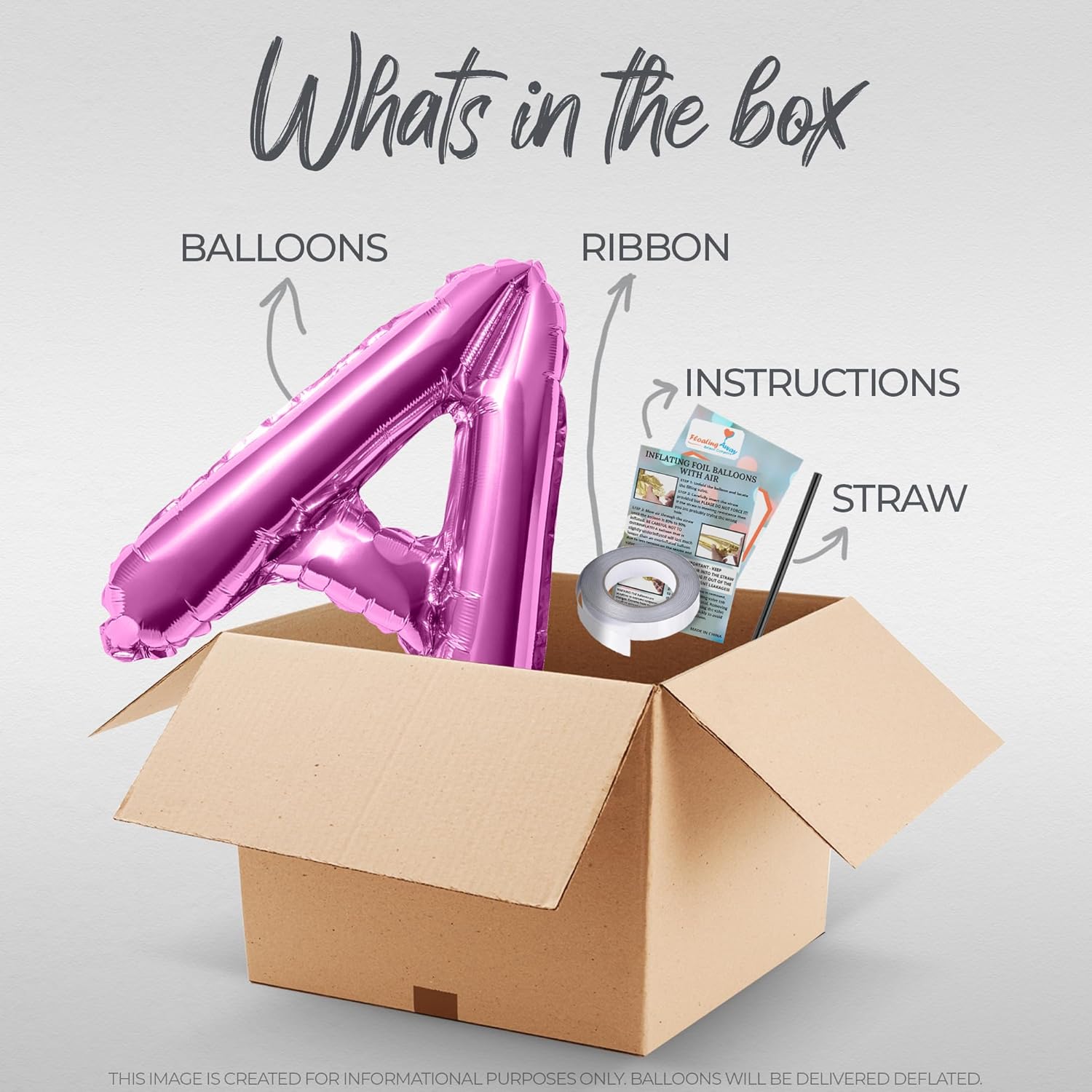 - Included Components : Letter Balloons, Straw, Ribbon and Instructions