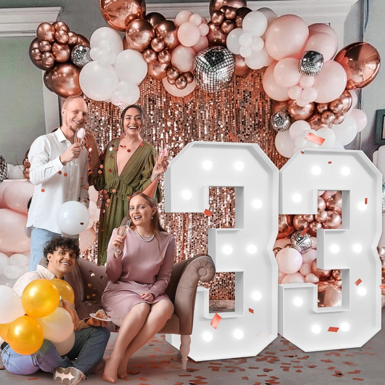 imprsv Marquee Numbers Large 33rd-Birthday Decorations: 4ft Light Up Number Party Decor 33 Year Old Women and Men Birthday Decoration Backdrop Anniversary Cardboard Big Mosaic Balloon Frame Number 33