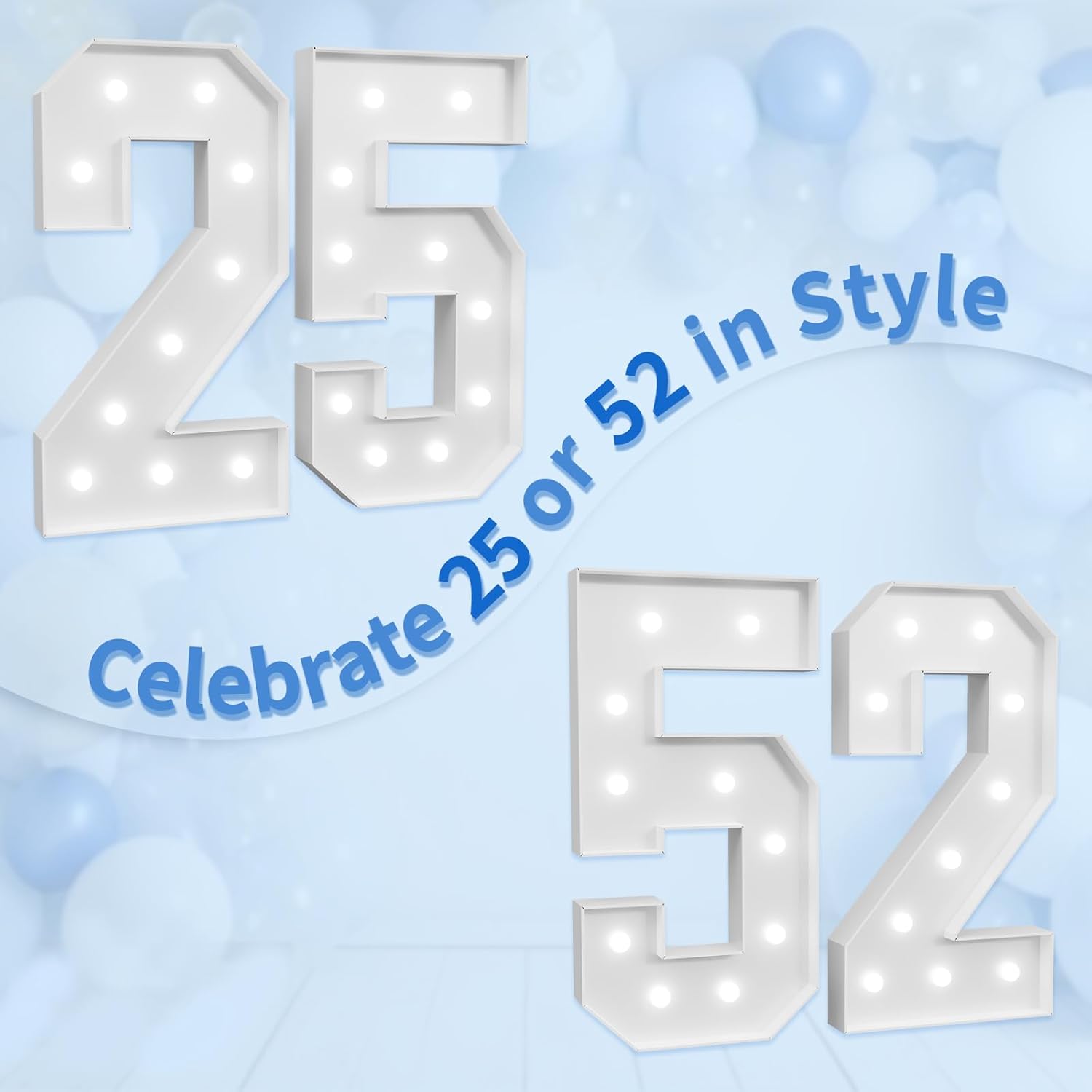 imprsv Marquee Numbers Large 25th-Birthday Decorations: 4ft Light Up Number Graduation Decoration 2025 Year Old Women Men Party Decor Backdrop 52 Anniversary Foam Board Big Number 25