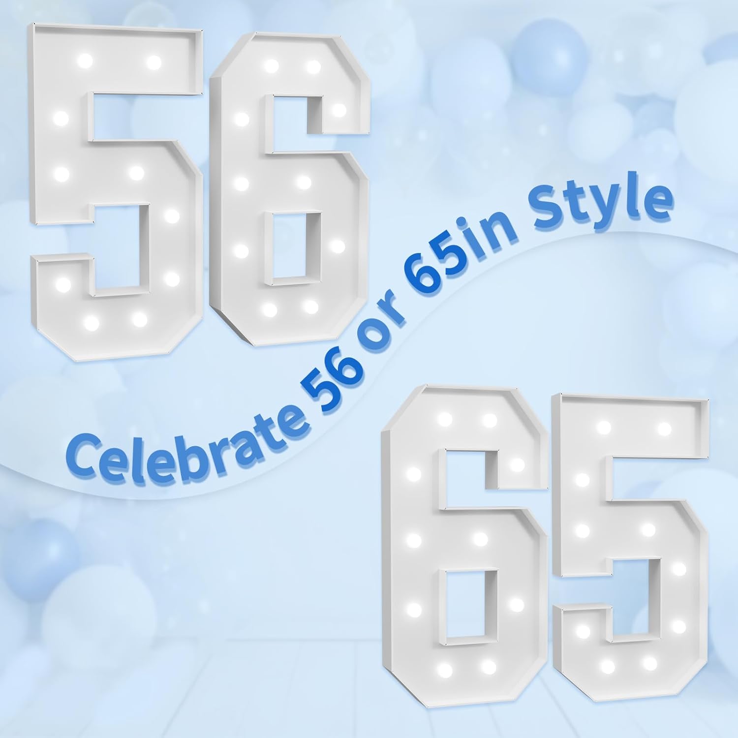 Marquee Numbers Large 56th-Birthday Decorations: 4ft Light Up Number Party Decor 56 Year Old Women And Men 65th Birthday Decoration Backdrop 65 Anniversary Cardboard Big Mosaic Balloon Frame Number 56