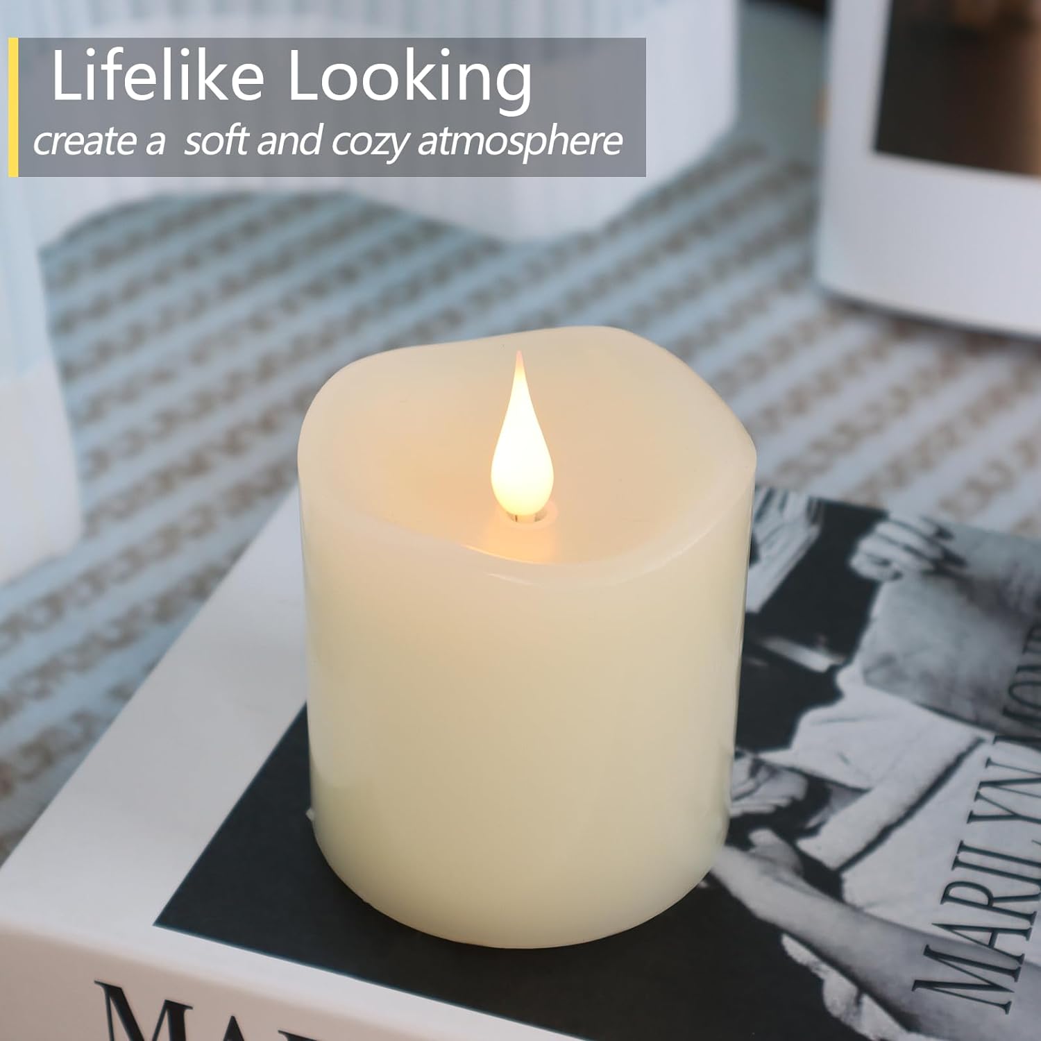 - Lifelike Candles: Flickering Flameless candles are designed with patented 3d moving flame, have the 360 degree dance viewing, the warm white glow create a soothing and relaxing ambiance.