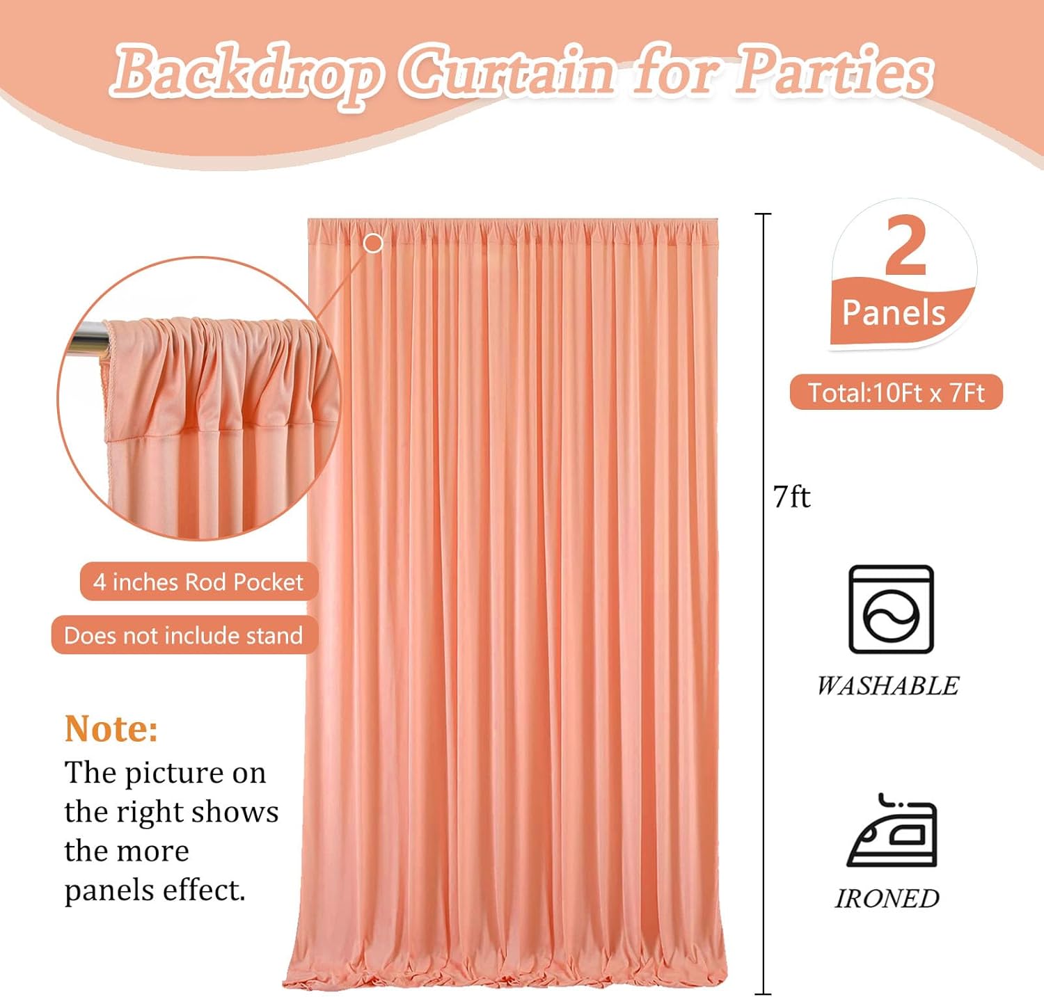 - 【Package and Size】2 soft fabric backdrop curtains per package. Each Backdrop Drapes measures 60" wide x 84" height(5ft x 7Ft). they were not in one width so you can decide how narrow or wide you want the backdrop by tightening or stretching.