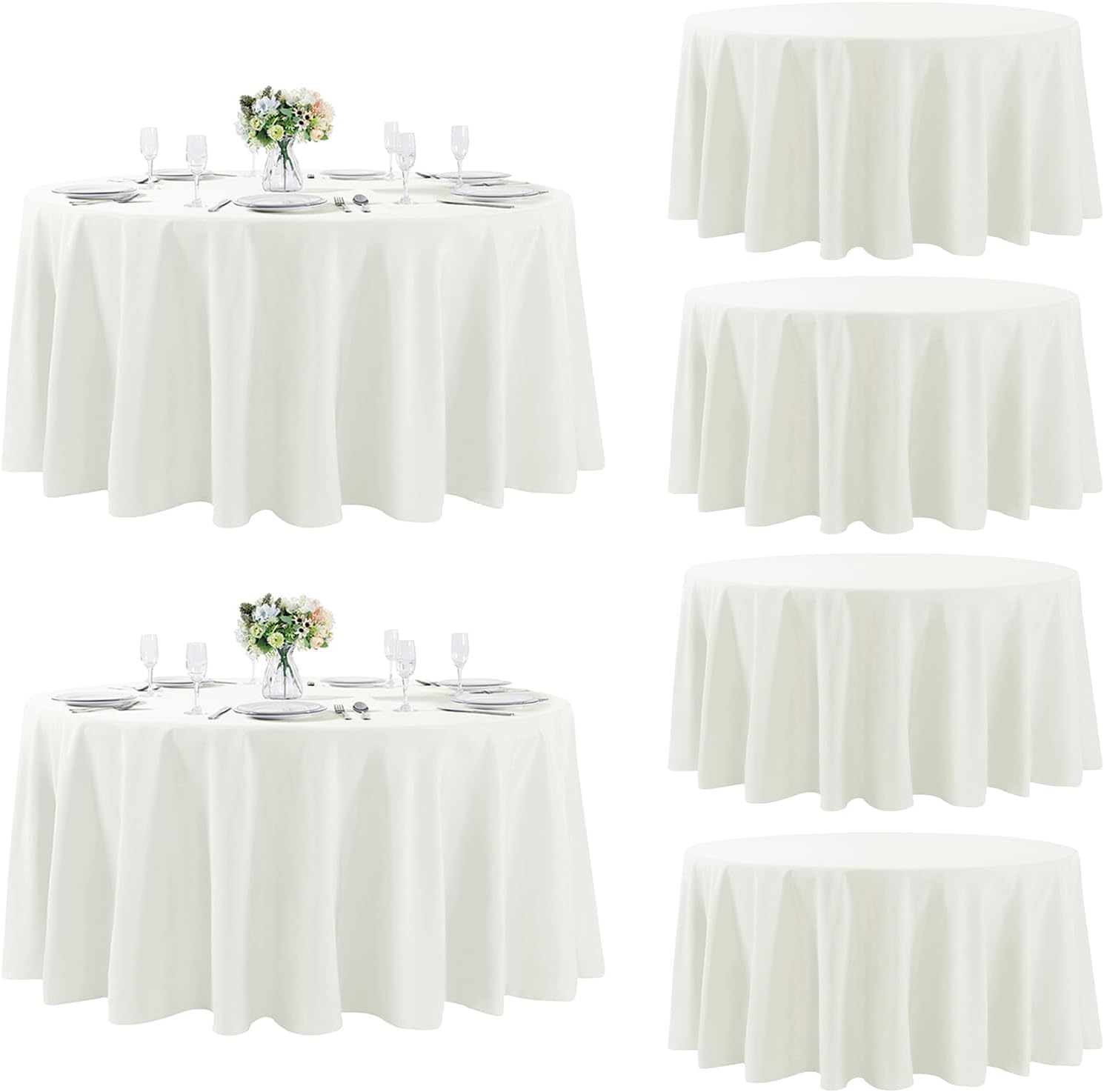 Fokitut 6 Pack Round Tablecloth, 132 Inch, Stain Resistant and Wrinkle Polyester Table Cloth, Fabric Table Cover for Kitchen Dining, Wedding, Party, Holiday Dinner-Ivory