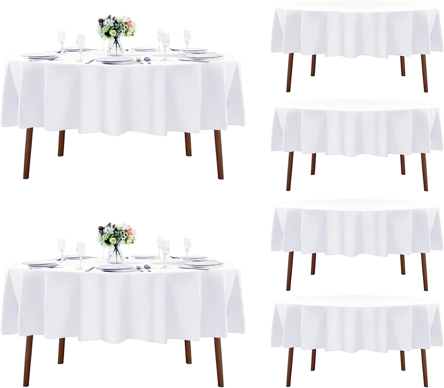 Fokitut 6 Pack Round Tablecloth, 90 Inch, Stain Resistant and Wrinkle Polyester Table Cloth, Fabric Table Cover for Kitchen Dining, Wedding, Party, Holiday Dinner-White