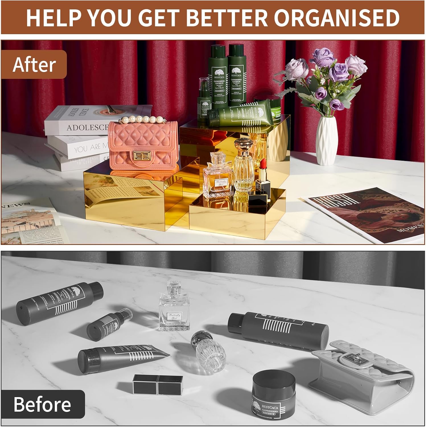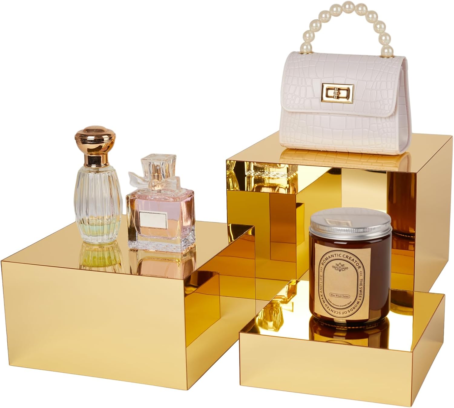 - DURABLE & STURDY: The gold cube display stand is made of acrylic with exquisite workmanship and smooth glossy surface, lightweight and not easy to deform or break. Acrylic boxes for display are a very ideal set of display box racks for displaying your jewelry and craft ornaments.