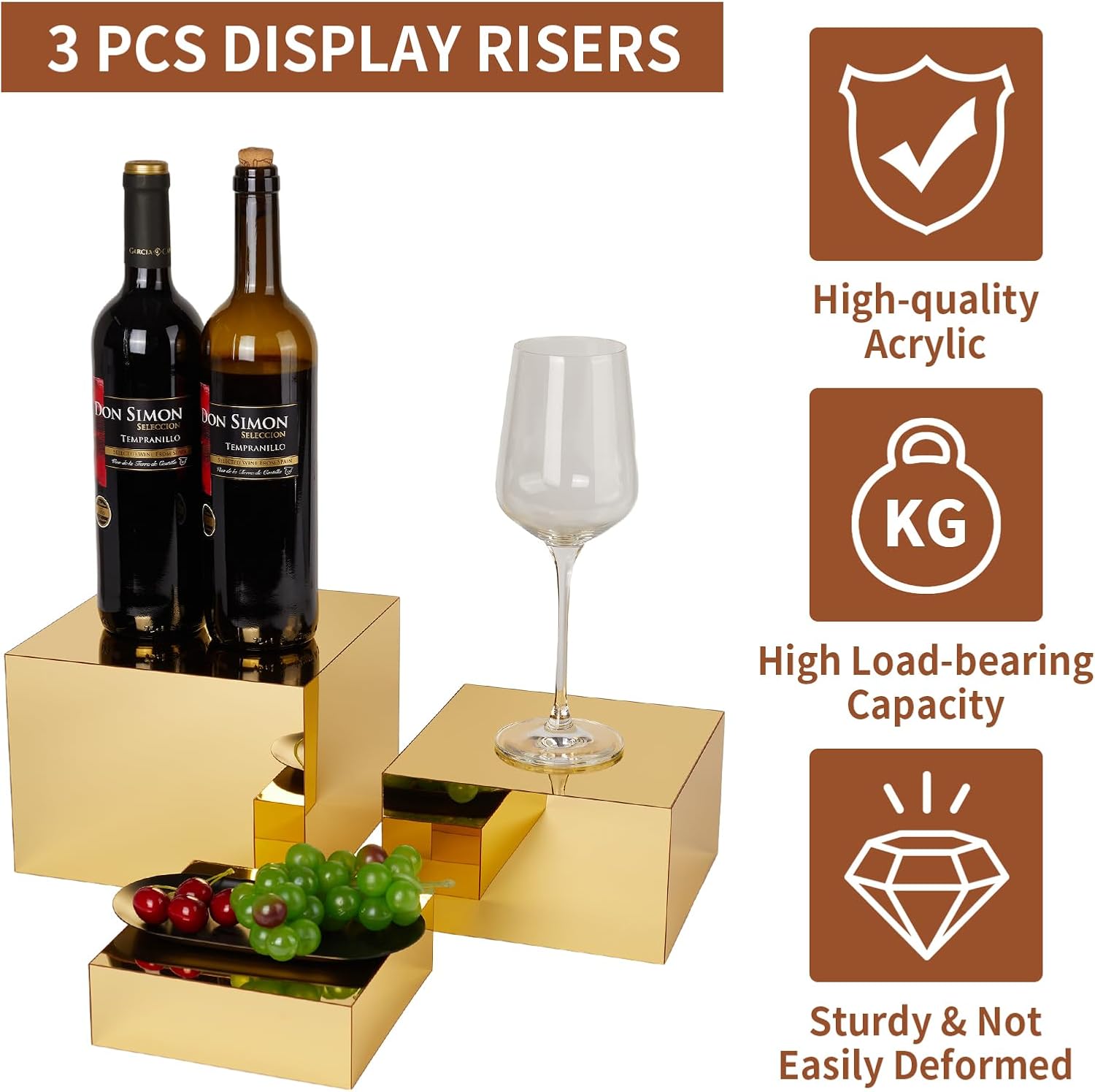 - PROFESSIONAL DISPLAY RACK: The acrylic cube display box is made of high quality opaque acrylic, elegantly designed but most importantly stable. Risers display stand is the perfect display rack for event catering, food desserts, but also can be used to display jewelry, perfume collections etc. Easy to decorate, suitable for any theme of the party.