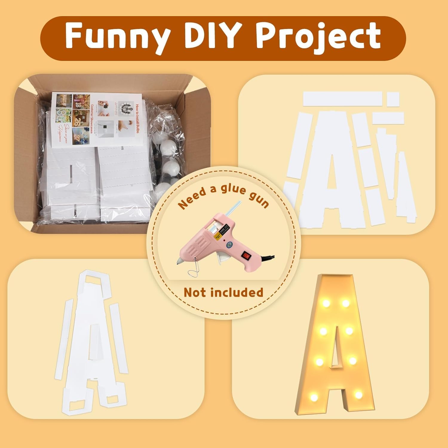 - Package Includes: A set of light up letters for party containing the pre-cut letter frames, a light string with several bulbs and assemble guiding manual. ( Noted: Glue gun and batteries are not included