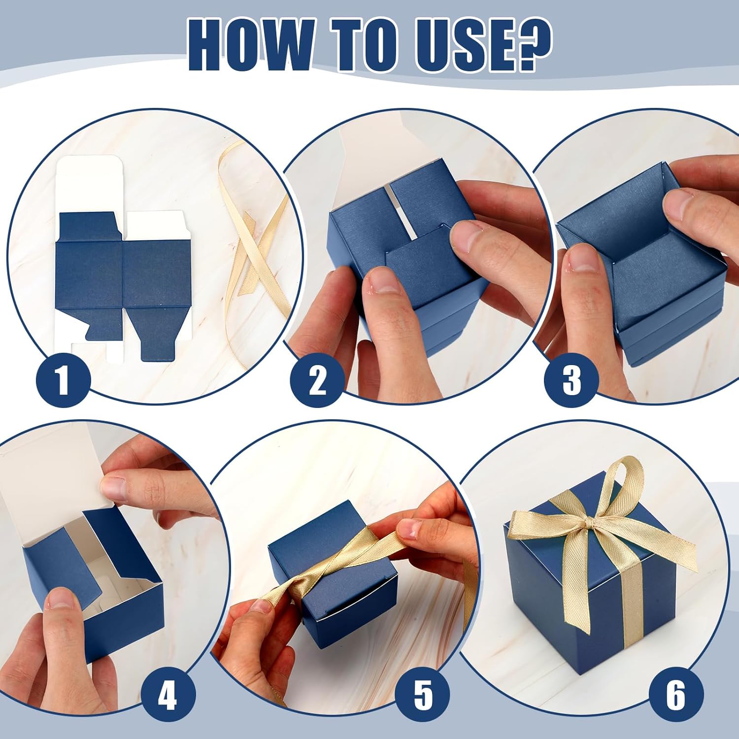 - Wide Applications: each navy blue gift box measures about 2 x 2 x 2 inch after folded, suitable for holding candy, cookie, chocolate, candle, jewelry and more, make your small gifts more charming