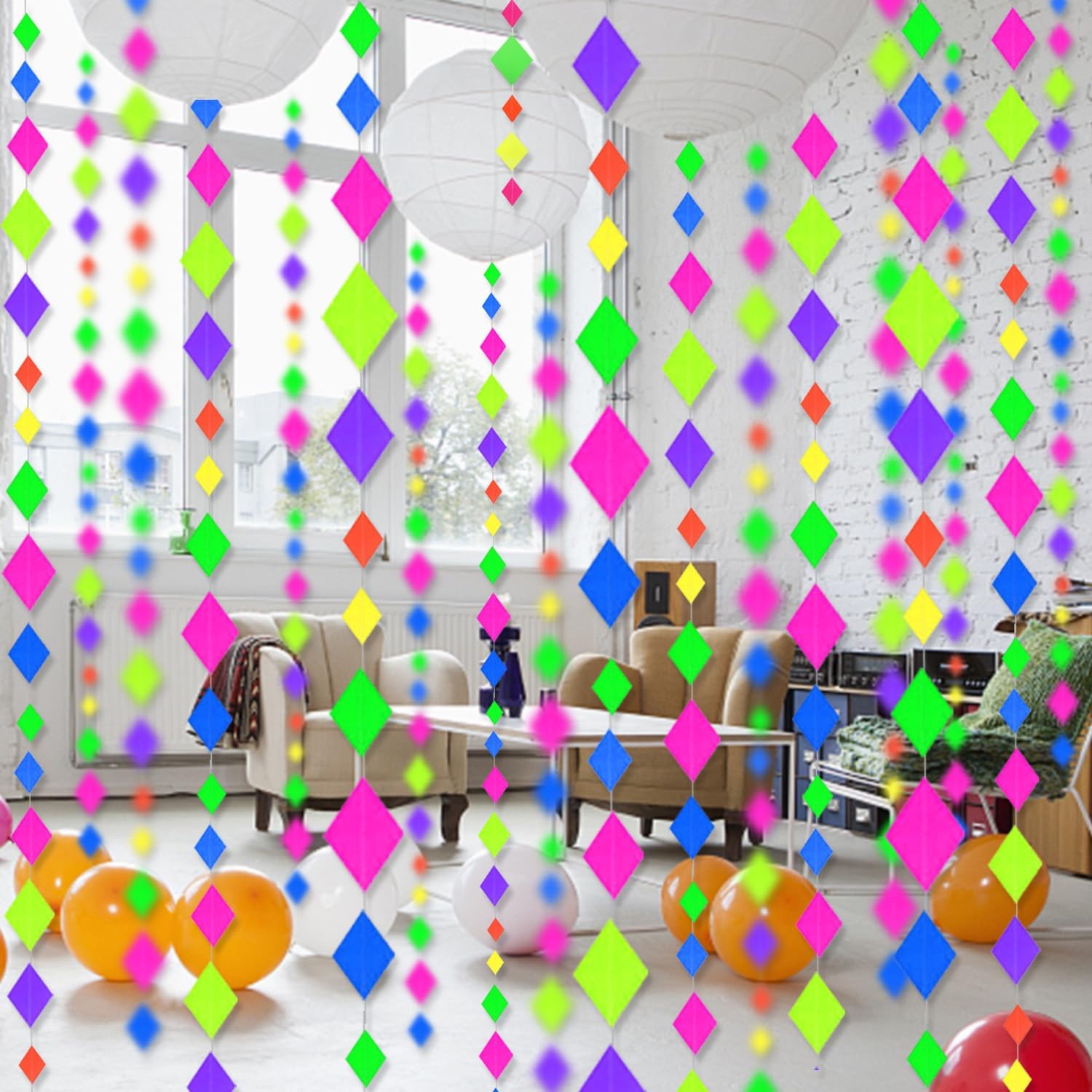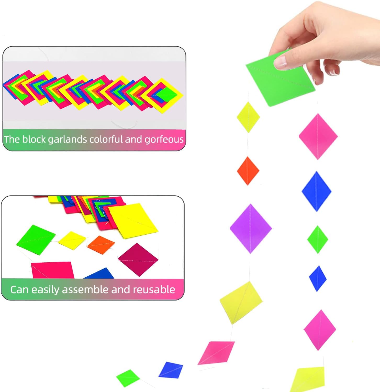 - 【What you can GET 】 Package Include: 123 Ft /6 Pcs 7 Colorful Diamond shape neon streamers garlands