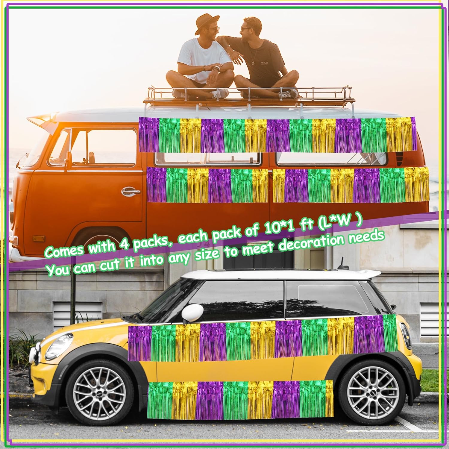 - ✨【PACKAGE INCLUDES】✨ Comes with 4 packs, each pack of 10*1 ft/3*0.3m (L*W ), You can cut it into any size to meet your decoration needs. If you want parade float decoration to be colorful, fuller, thicker and looks better, it is better to use more than 2 packs of fringe float overlapping together. And tape each foil fringe garland on the car/wall, not on top of each other. With these festive metallic streamers, you can take your parade float decorations to the next level